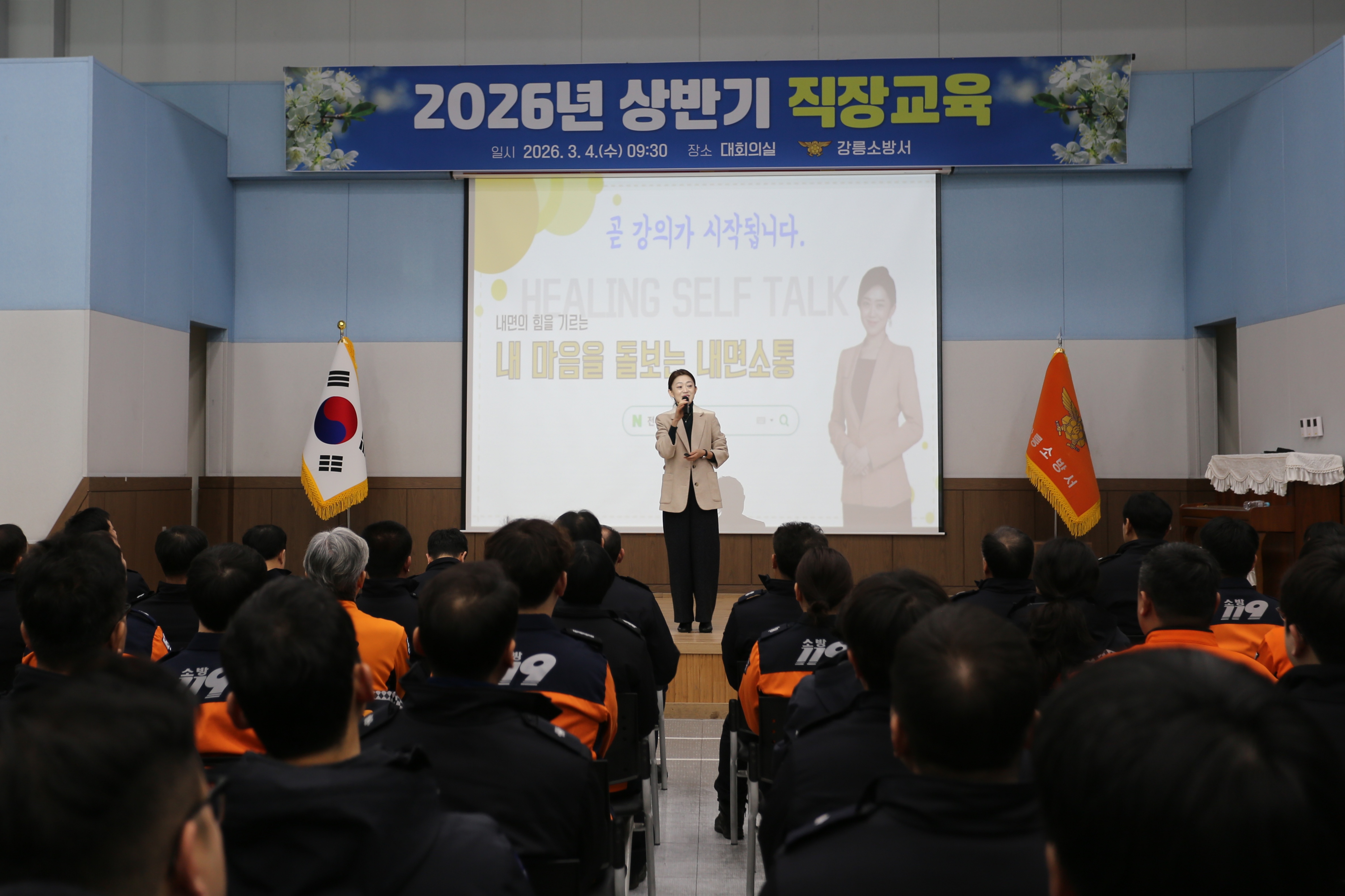 강릉소방서는 오늘 오전 9시 30분 강릉소방서 대회의실에서 올바른 공직가치 확립을 위한 2026년 상반기 직장교육을 실시하였습니다.