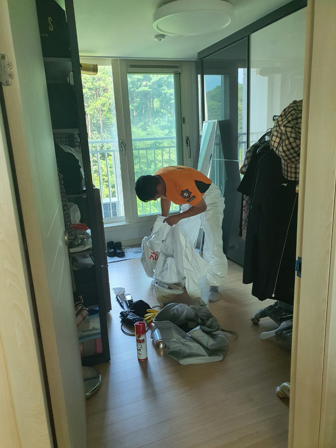 22일 목요일 오전 우연히 뒤쪽 창문가에 축구공만 한 말벌집을 발견하고 겁먹은 표정으로 관리사무실에 전화했더니 119에 바로 신고해 주셔서 두 분의 소방관님이 오셔서 벌집을 떼어 주셨어요. 그냥 있어도 땀이 줄줄 날만 큼 더운 날씨인데 방호복을 입고 제거하시느라 얼마나 힘드셨을지.. 방문을 나서는 소방관님의 얼굴엔 땀이 줄줄.. 온몸이 땀으로 젖어 있는 모습에 죄송하기도 하고 직업정신이 투철하신 분이구나 하고 생각했습니다. 작은 음료수 하나밖에 드리지 못했는데.. 성함을 몰라 이렇게라도 칭찬해 드리고 싶었습니다. 주어진 일에 최선을 다하는 이름 모를 소방관님! 고맙고 감사드립니다.
