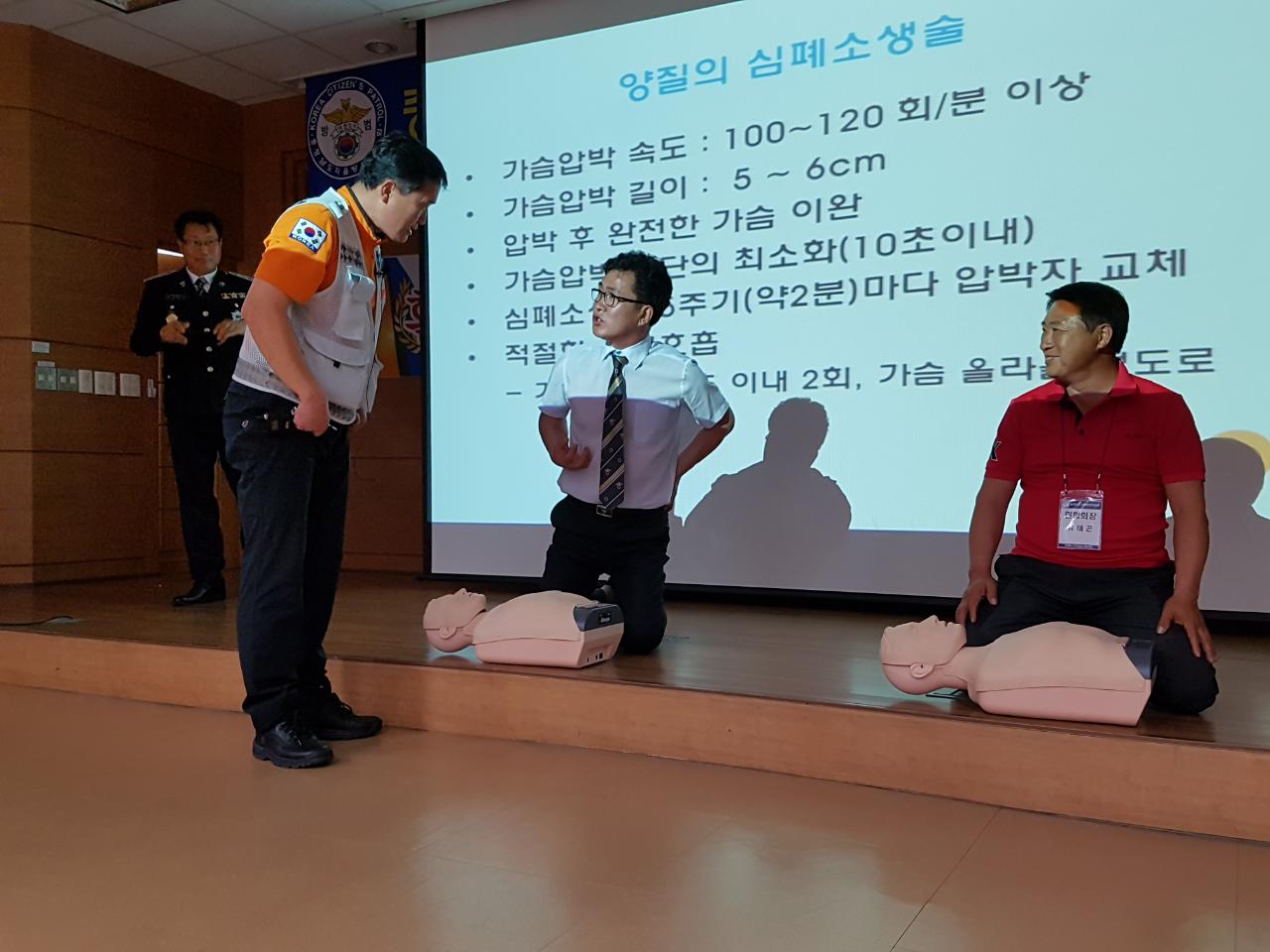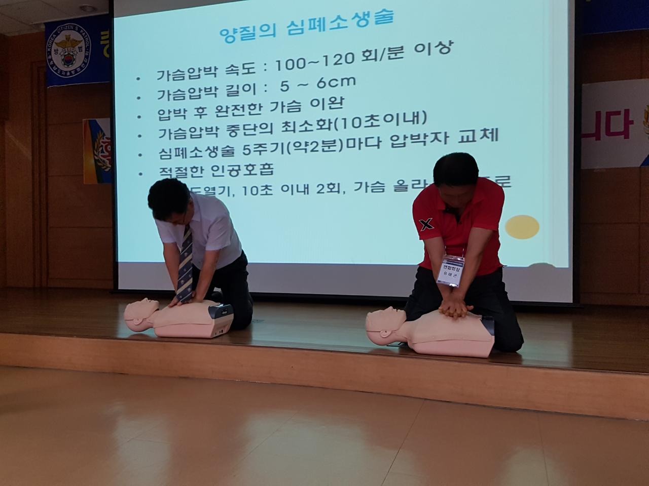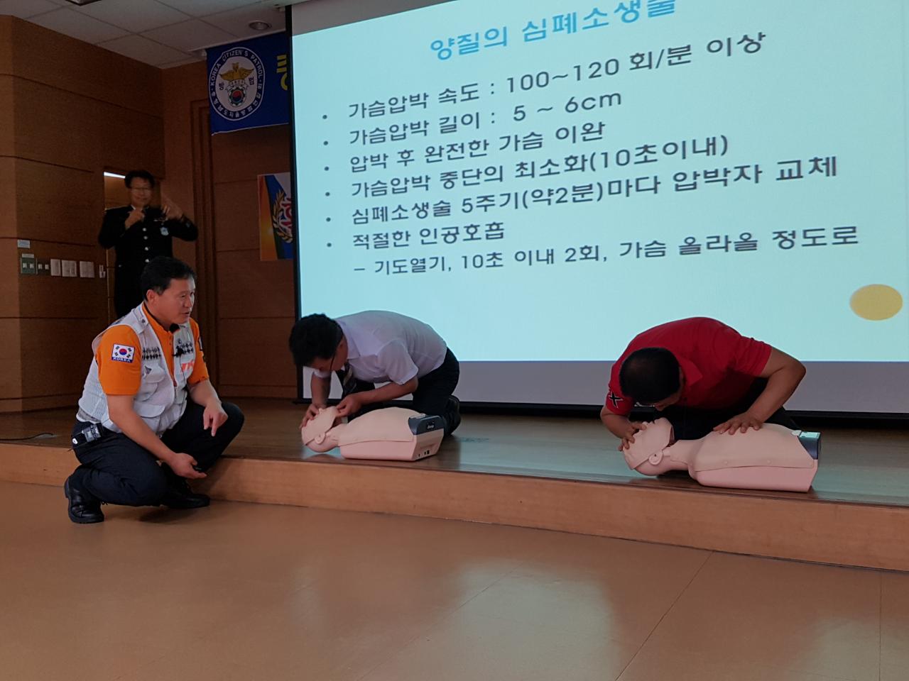 더운 날씨와 지연된 시간속에서도 온화하시고 밝은 목소리로 심폐소생술 교육을 해주신 강릉소방서