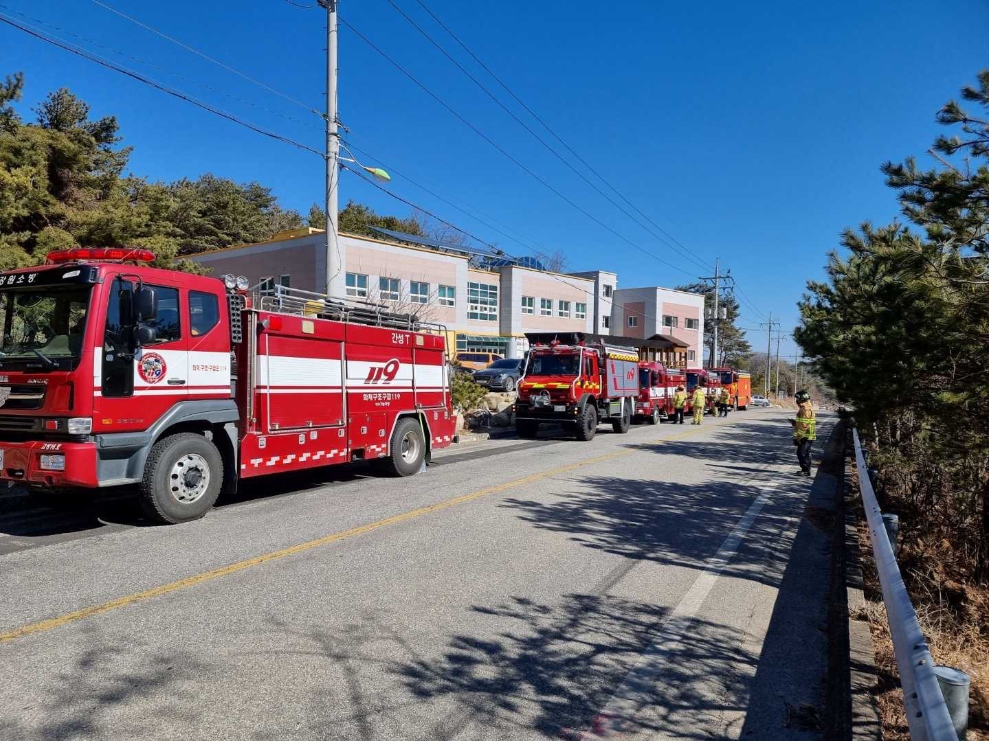 강원고성소방서, 동해안 산림화재 가상 실제 동원훈련