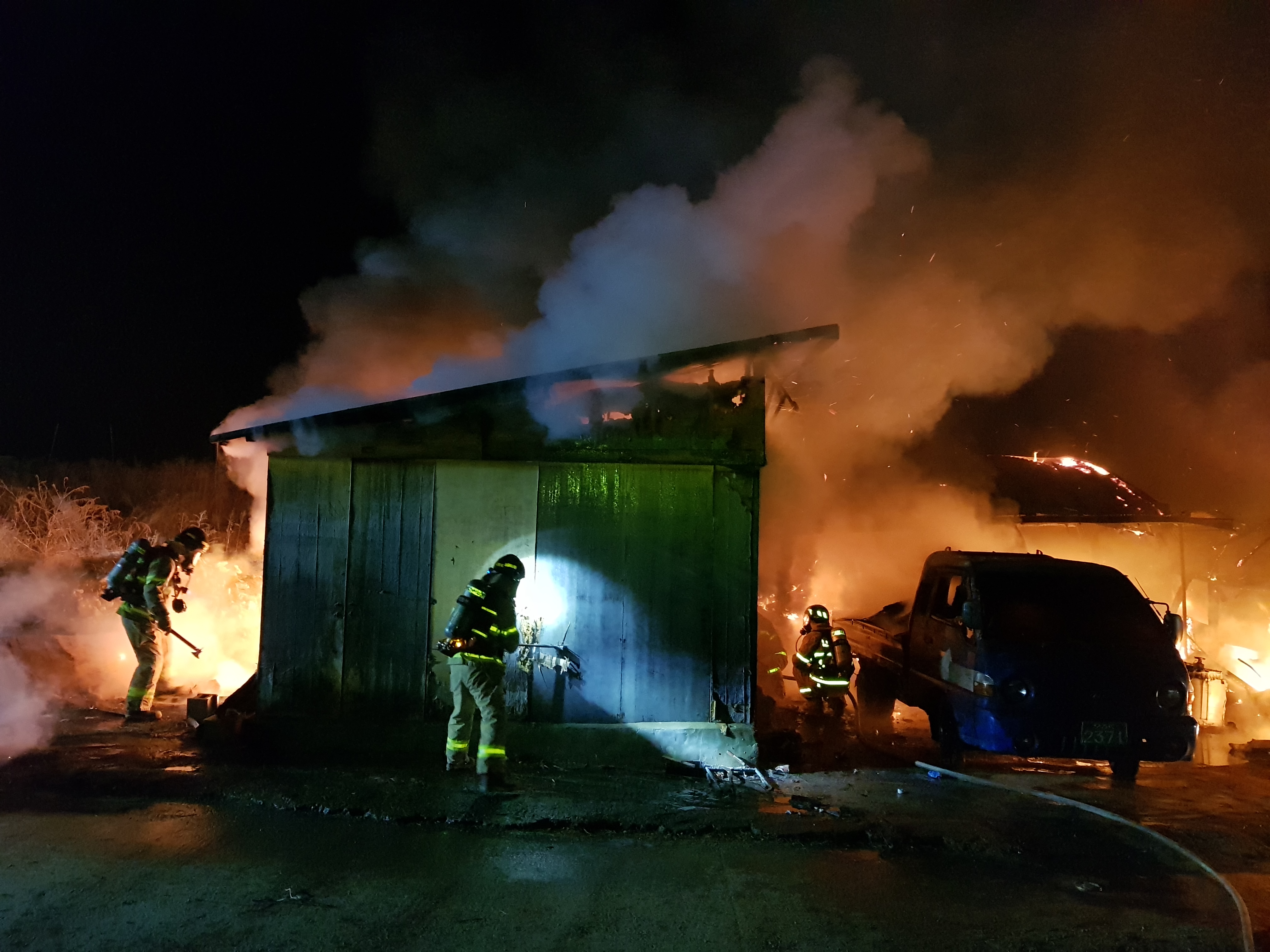 ○ 내 용 : 목조 함석지붕 등 2동 82㎡ 전소 및 1톤 포터 부분소(완진23:11분)