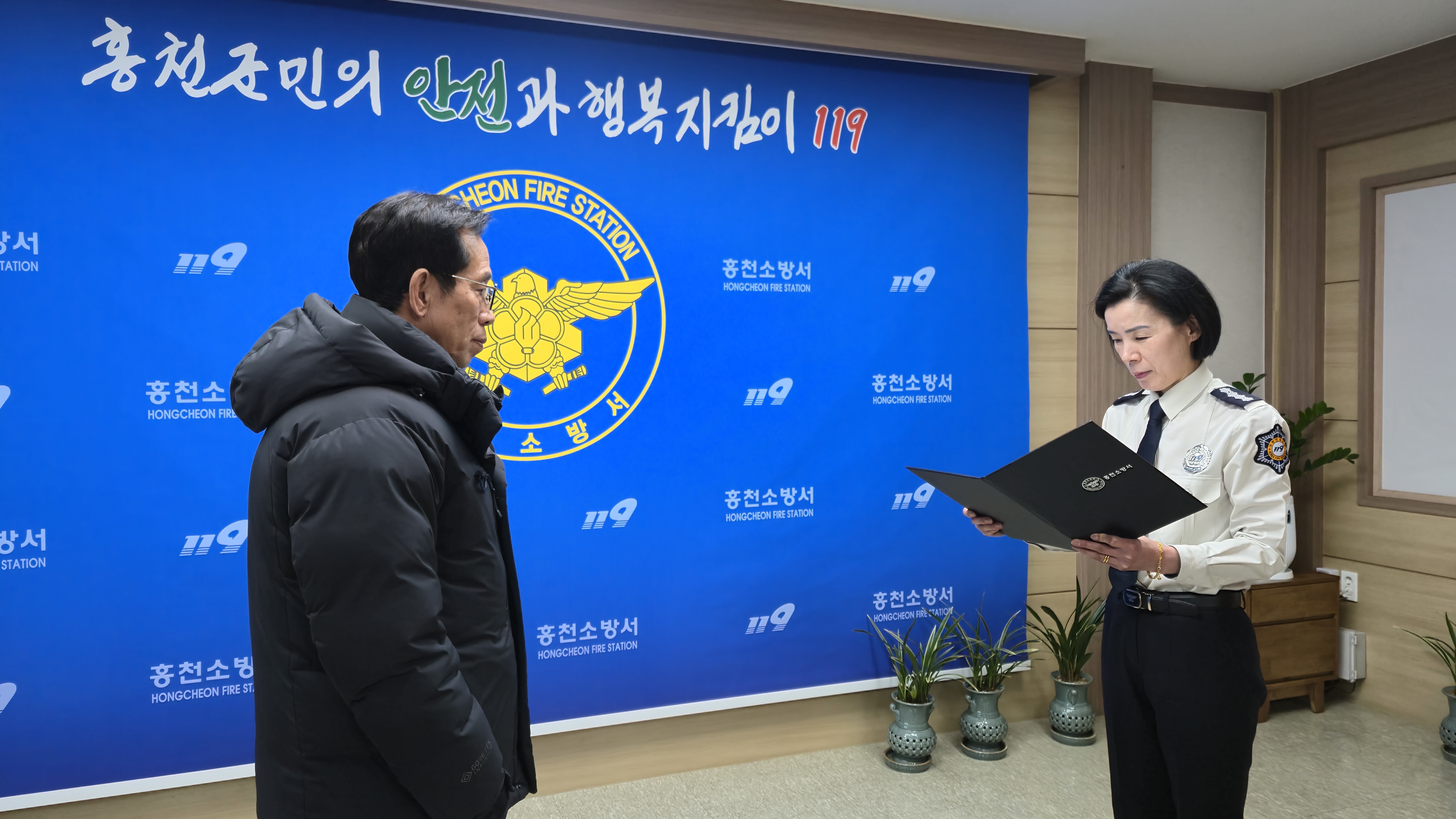 | 1086 | 홍천소방서, 화재 초기 진압한 민간인 이순범 씨 유공 표창 | 홍천홍보 | 2025-01-16 | 441 | |