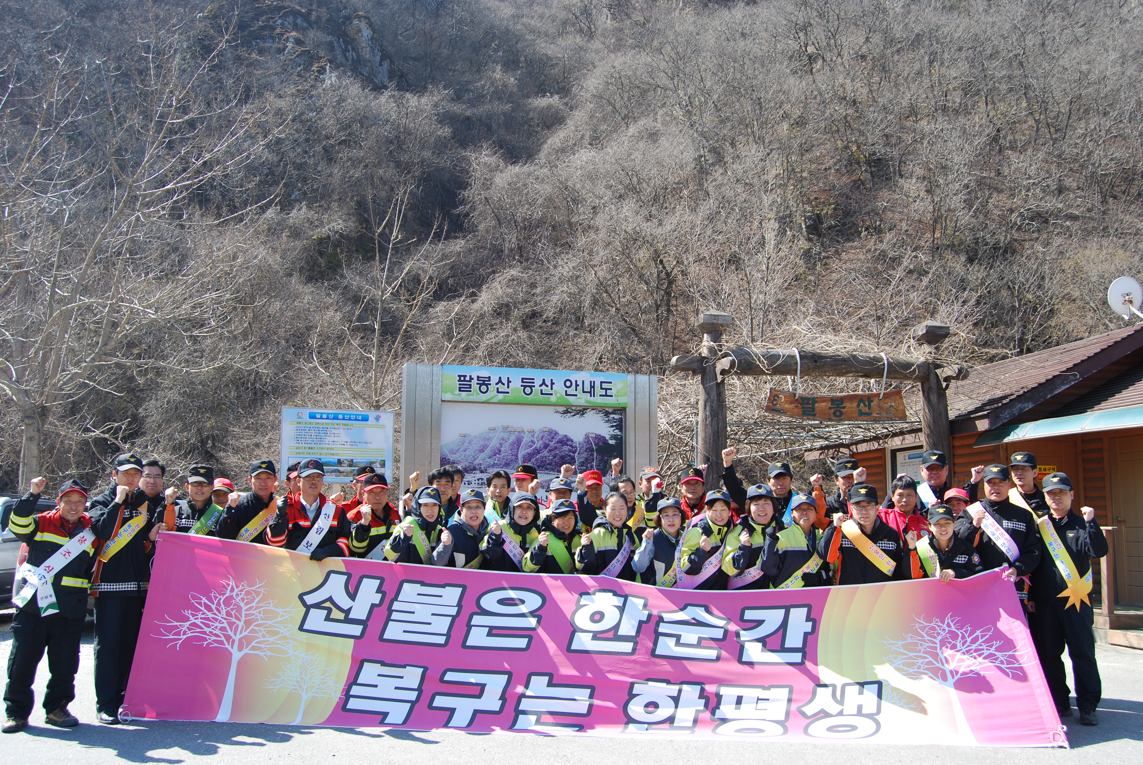 4월7일 오전 10시 팔봉산 등산로 입구에서 홍천국, 국유림사무소,