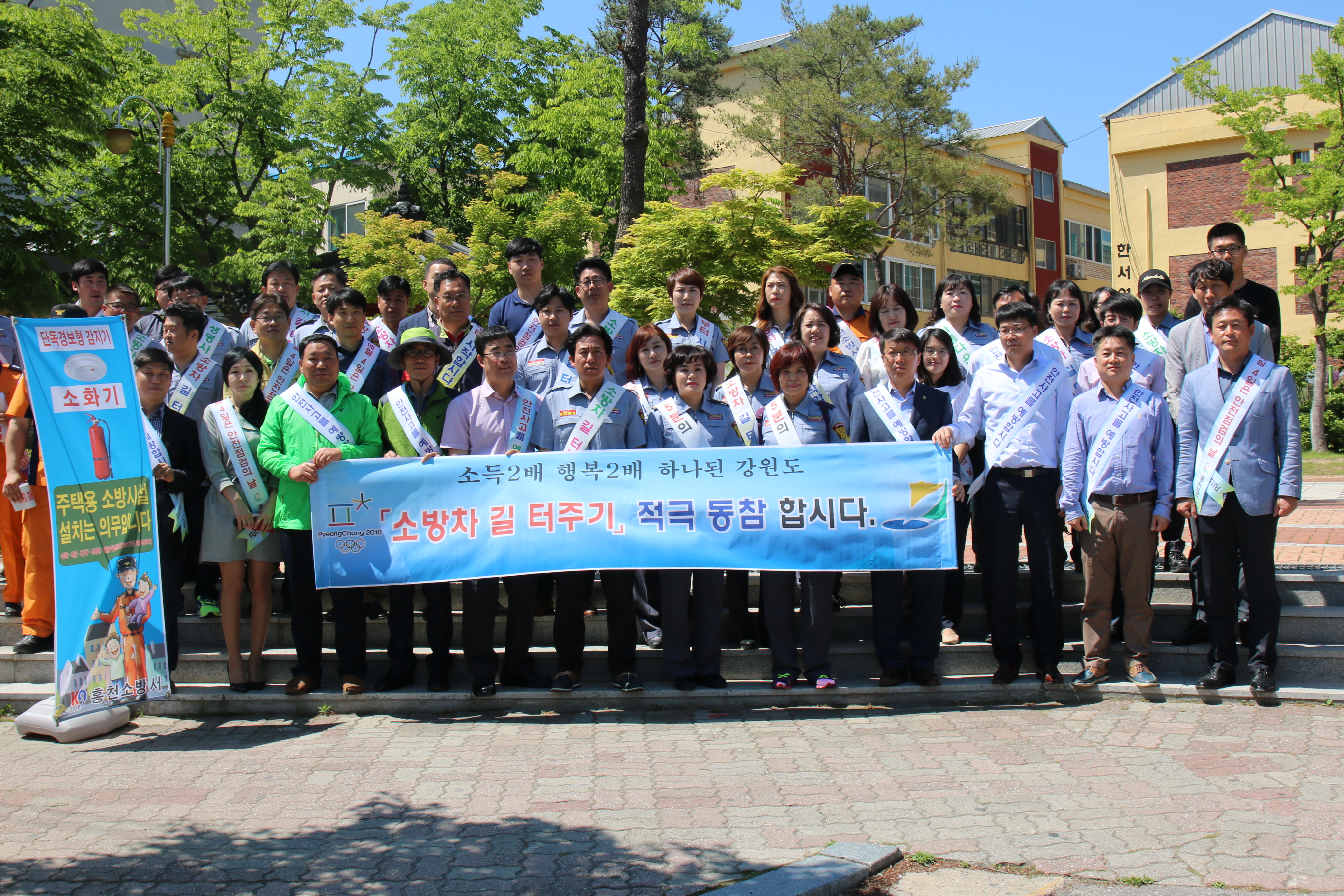 홍천소방서에서는 17(화) 오후 2시 30분에 홍천 중앙시장에서 「소방차 길터주기 국민참여 훈련」 및 유관기관 관계자 소방차량 동승체험을 실시하였다.