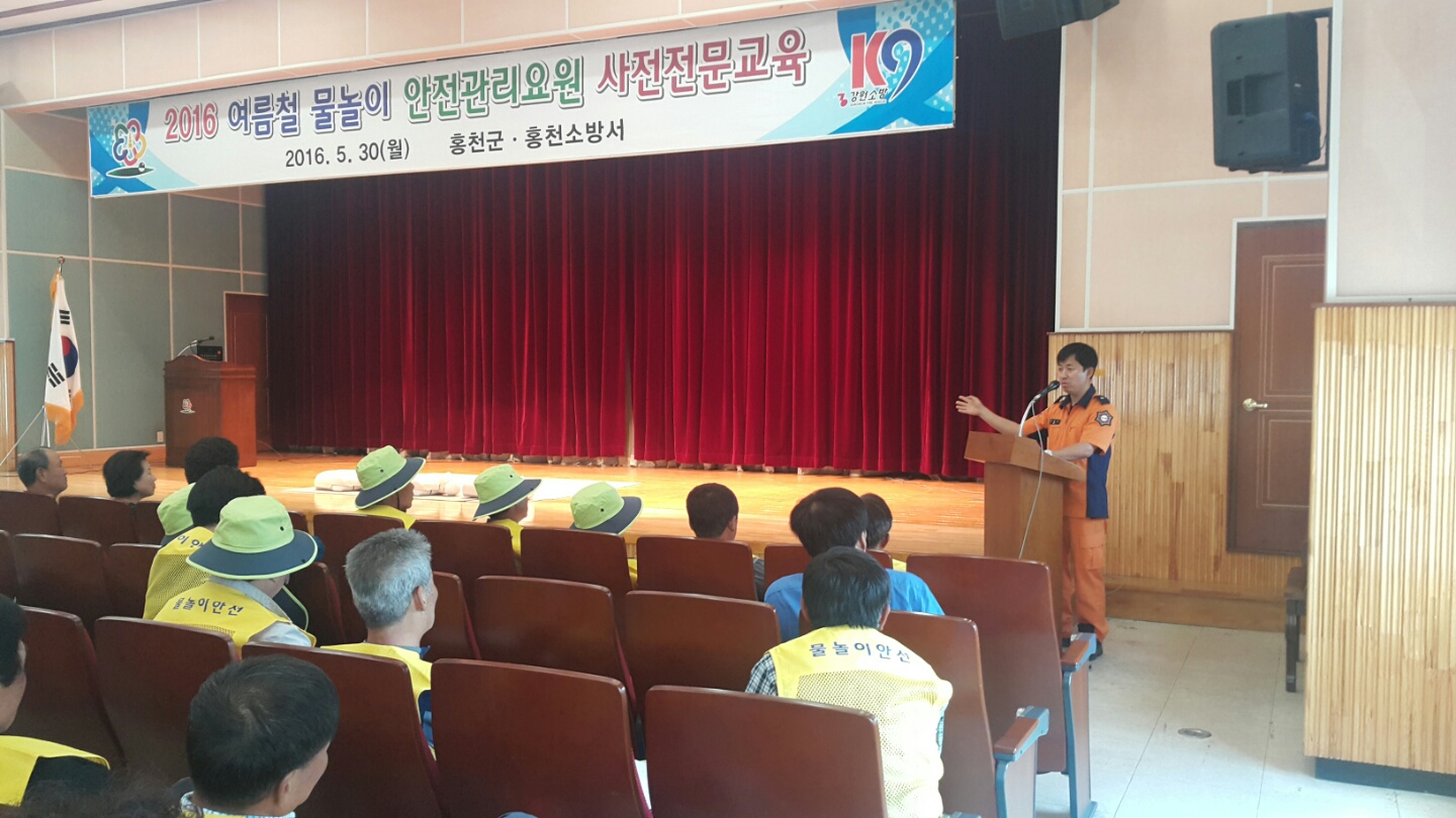 홍천소방서에서는 30(월) 오후 2시에 홍천군 사회문화복 지관에서 물놀이 안전요원 및 각 읍·면 물놀이 담당자등 130여명을 대상으로 「물놀이 안전요원 전문교육」을 실시하였다.