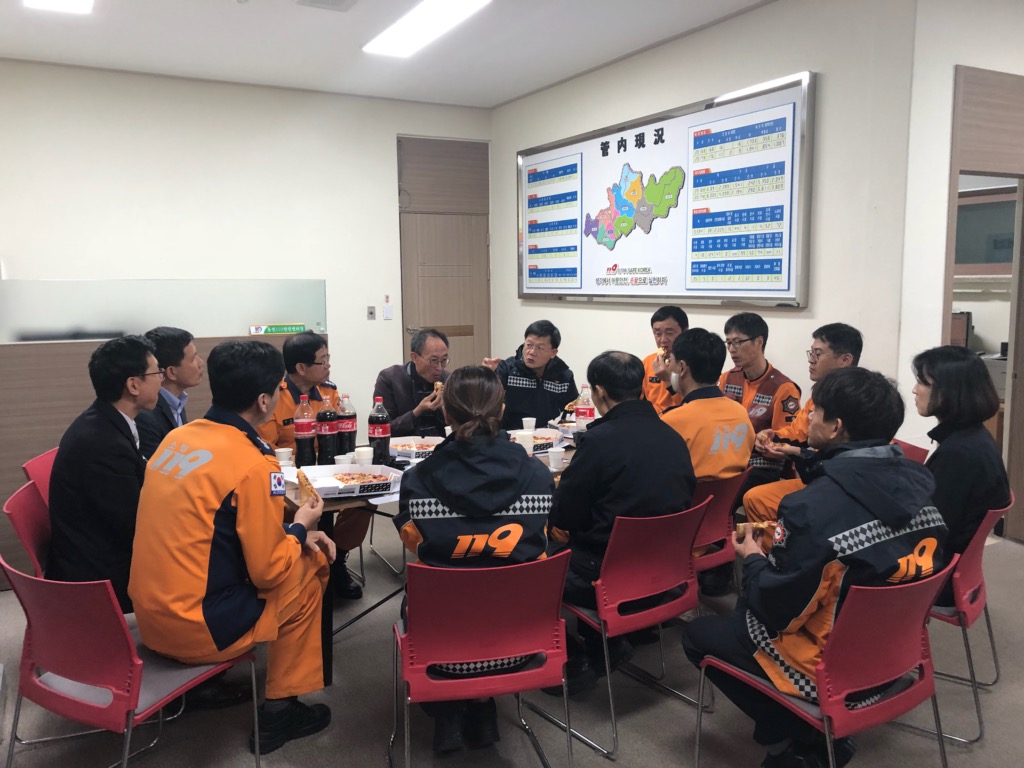 강원도소방본부장 화재현장에서 3살아이 구조대원 격려방문