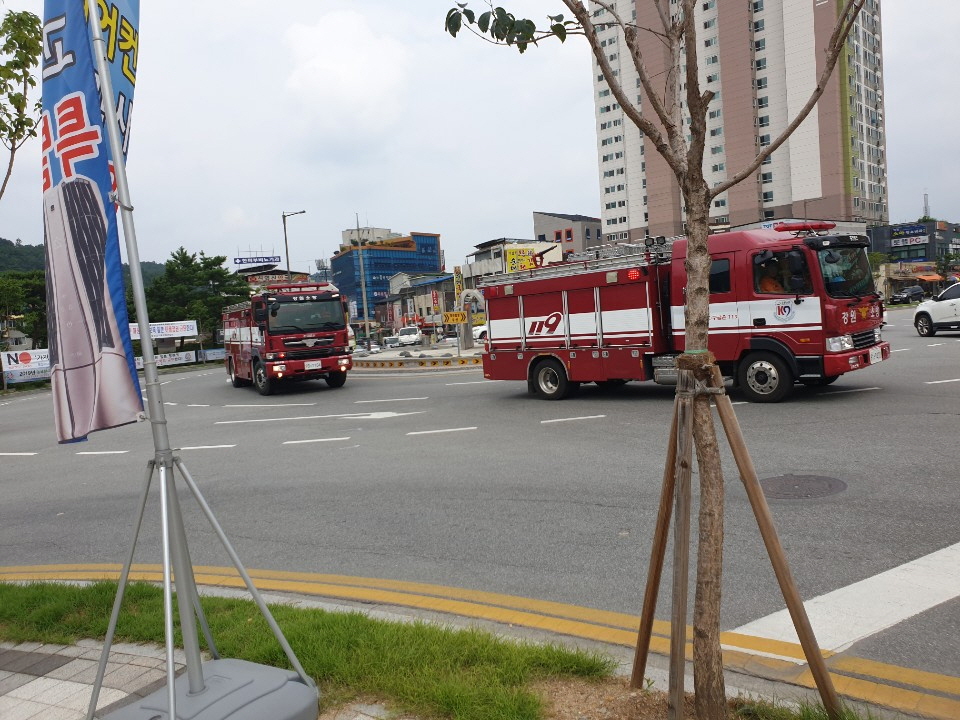 홍천소방서 소방차 길 터주기 훈련 실시