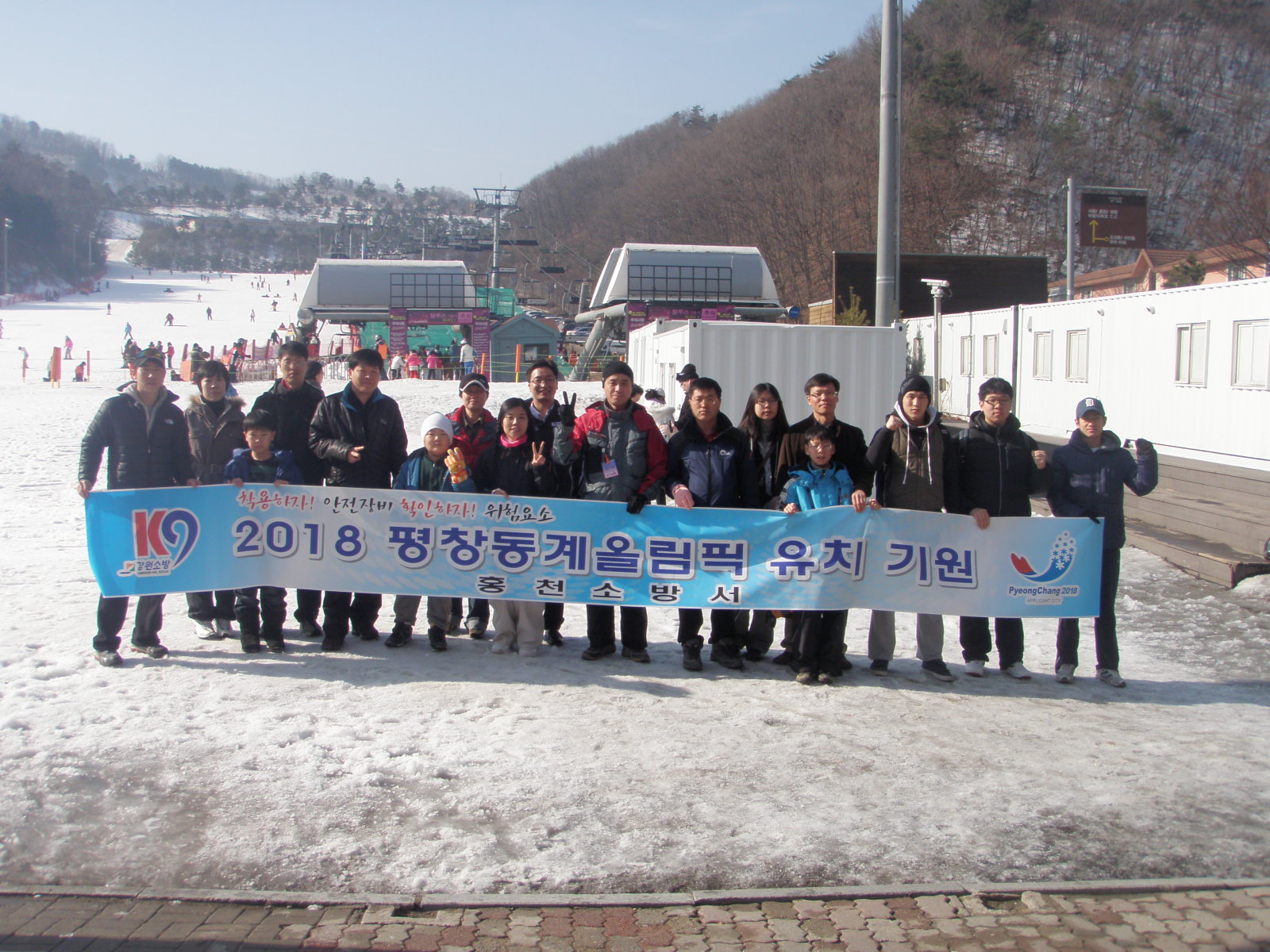 홍천소방서(서장 이성묵)에서는 24~25일 2일동안 “ 2018년 평창 동계 올림픽 유치”를 기원하기 위한 스키캠프를 개최하였습니다. 이번 스키 행사는 홍천소방서와 대명비발디에서 공동으로 마련하여 홍천소방서 직원 및 가족을 초청하여 겨울 스포츠를 직접 체험해보는 시간을 가졌으며, 또 연일 선전을 펼치고 있는 밴쿠버 올림픽 대표팀에게 응원의 힘을 모아 전달하는 시간을 가졌습니다.
