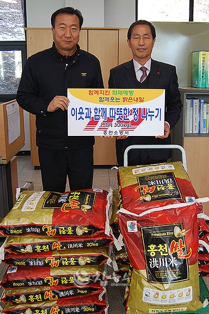 홍천=참뉴스】강원 홍천소방서(서장 이종진)는 24일 연말연시를 맞아 불우이웃을 돕는데 써달라며 20㎏들이 쌀 15포를 홍천군청에 기탁했다.
