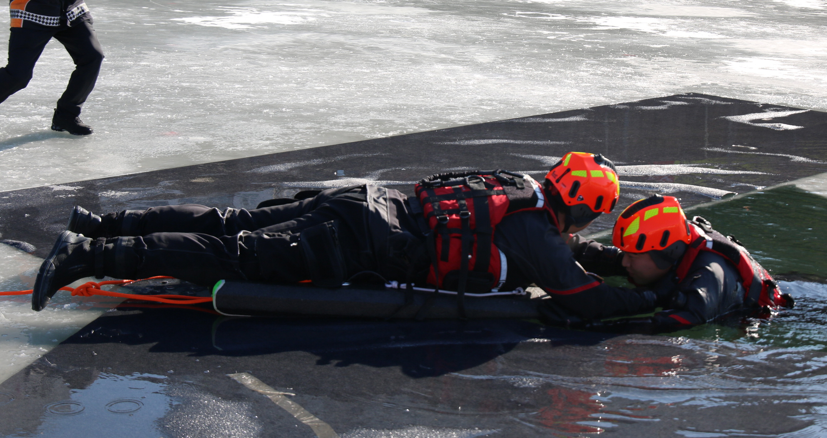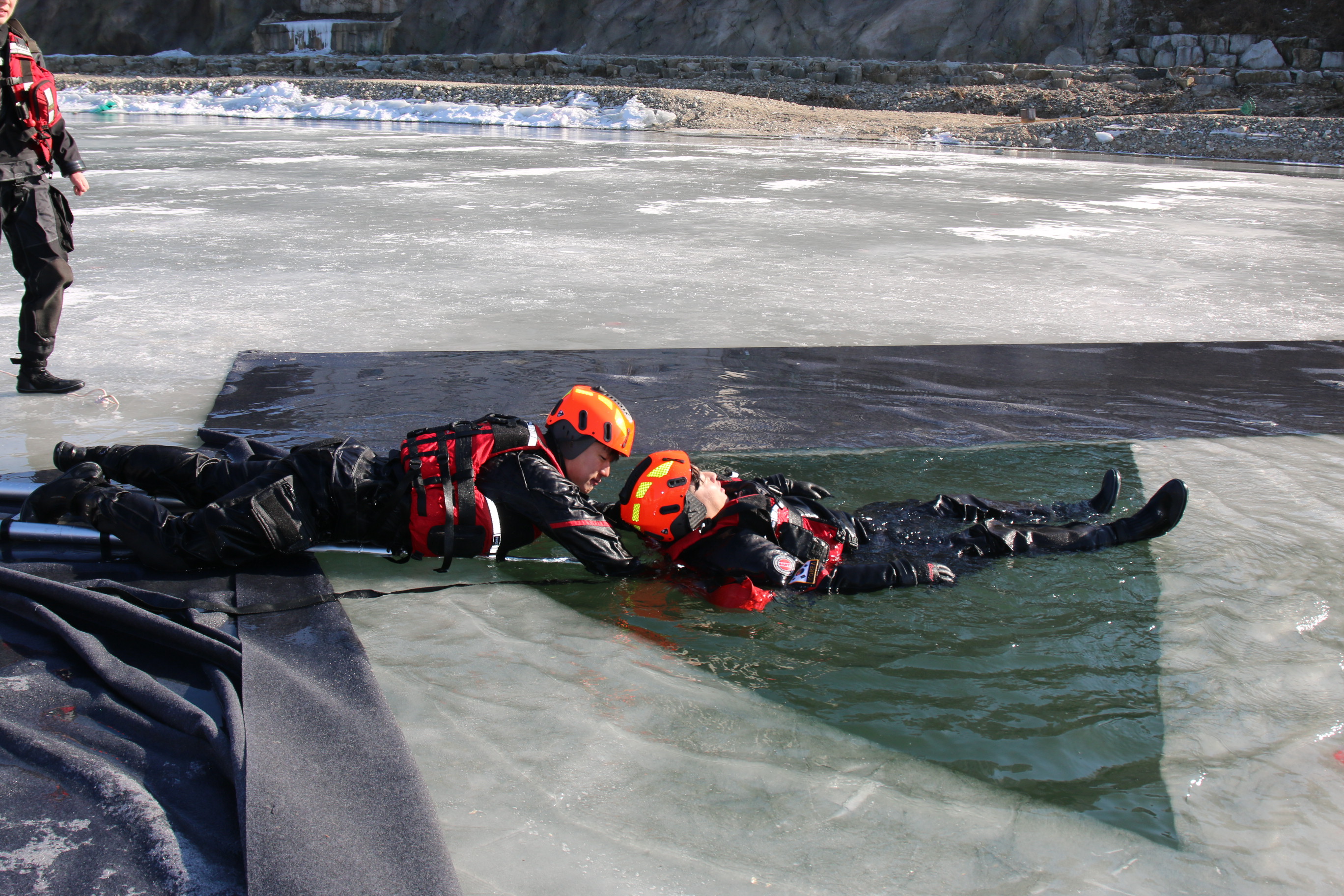 이번 훈련은 해빙기 강이나 저수지에서 일어날 수 있는 수난사고에 대비해 구조대원의 수난구조기법 및 장비조작 능력강화를 목적으로 마련됐다.