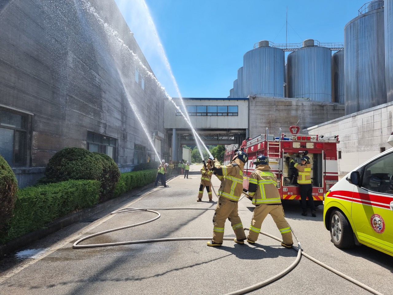 홍천소방서, 하이트진로 강원공장에서 대형 화재예방 소방훈련 실시