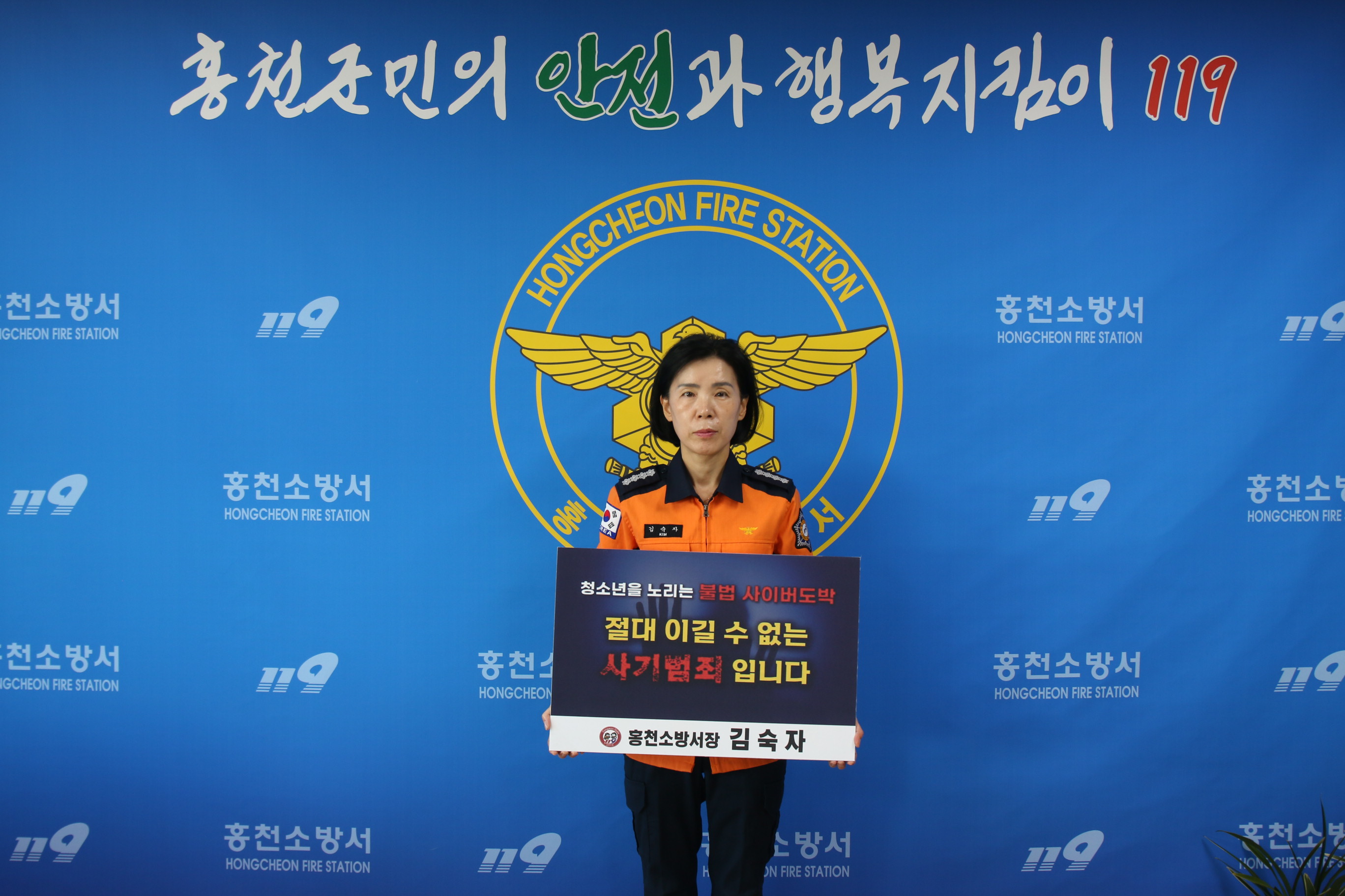 강원 홍천소방서 김숙자 서장이 신영재 홍천군수의 지명으로 청소년 사이버 도박 근절을 위한 릴레이 챌린지에 동참했다.