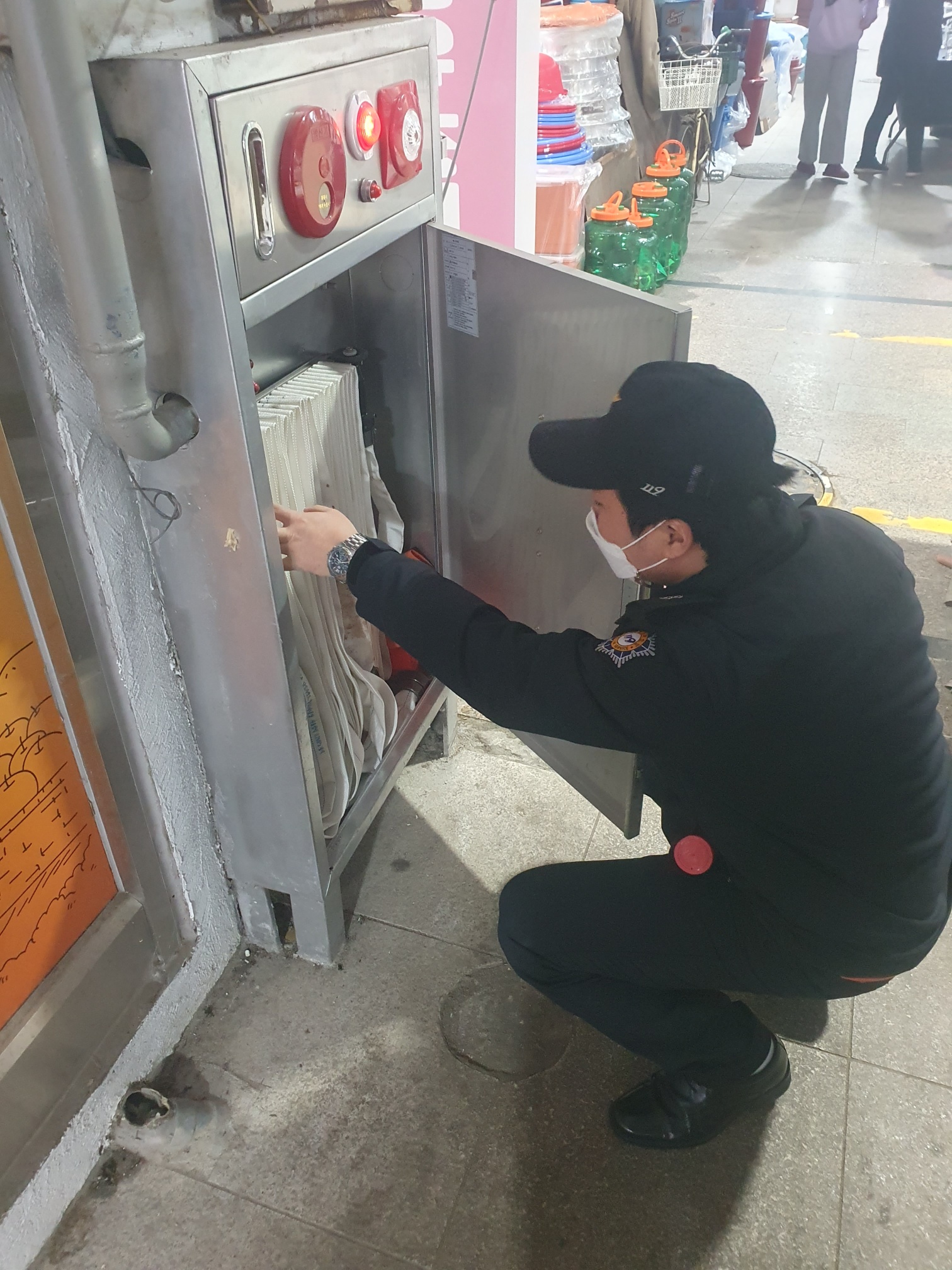 주요 내용은 ▲소방시설 합동 점검 ▲점포 내 자율 안전관리 시행 지도 및 안내 ▲소방차 길 터주기 및 전기제품 안전 사용 ▲다매체 신고 방법 및 K급 소화기 설치 홍보 ▲주택용 화재경보기 및 불나면 대피 먼저 홍보 ▲비상구 신고포상제 운영 홍보 등이다.