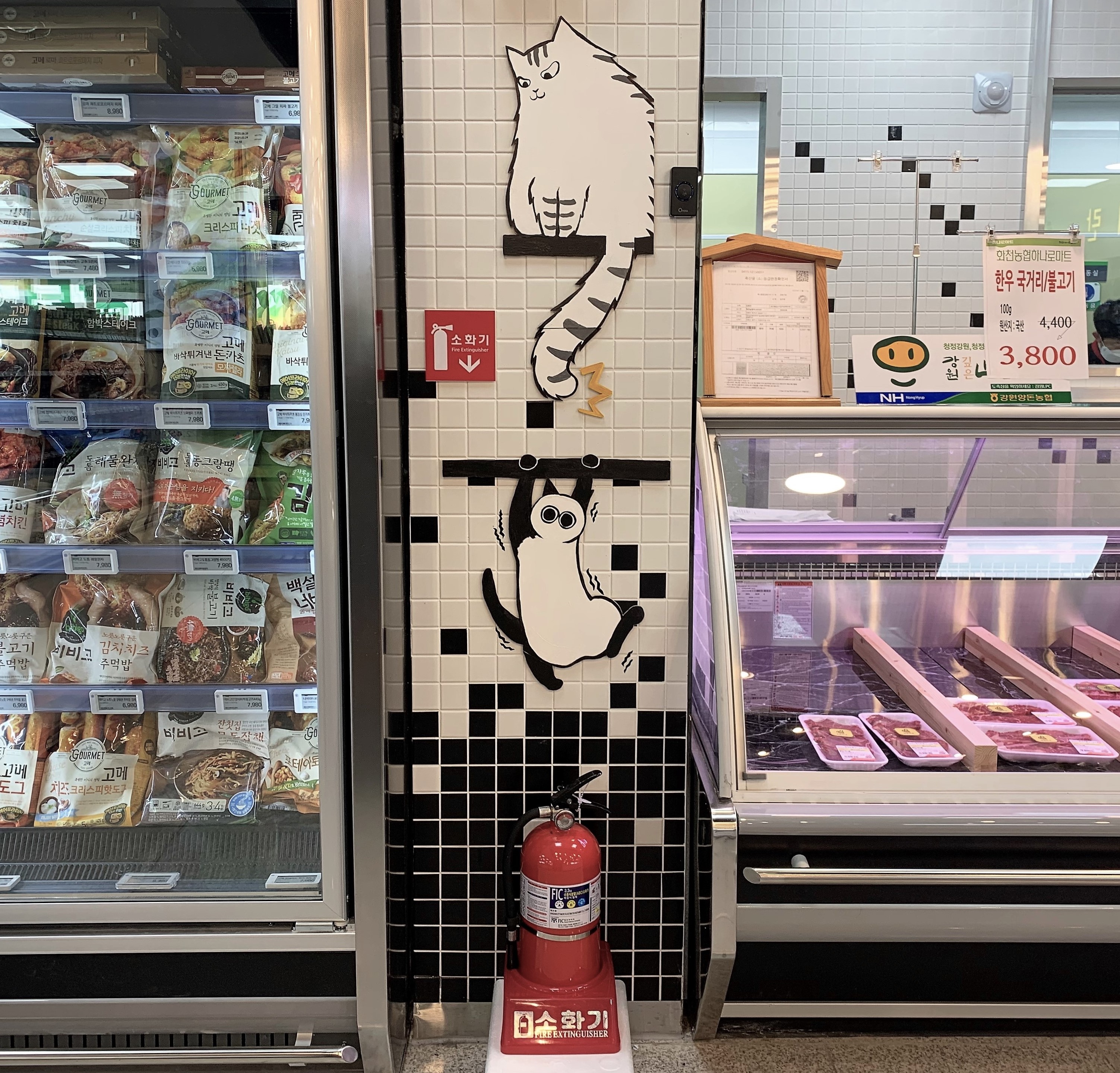 도민들의 눈높이에 맞는 '소화기 일러스트'를 화천읍 다중이용시설 등 6개소에 제작했습니다.