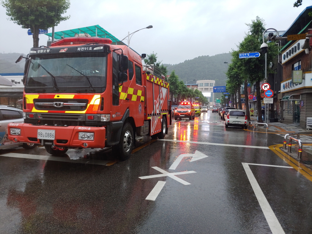 화천소방서, 소방차 길 터주기 훈련 실시