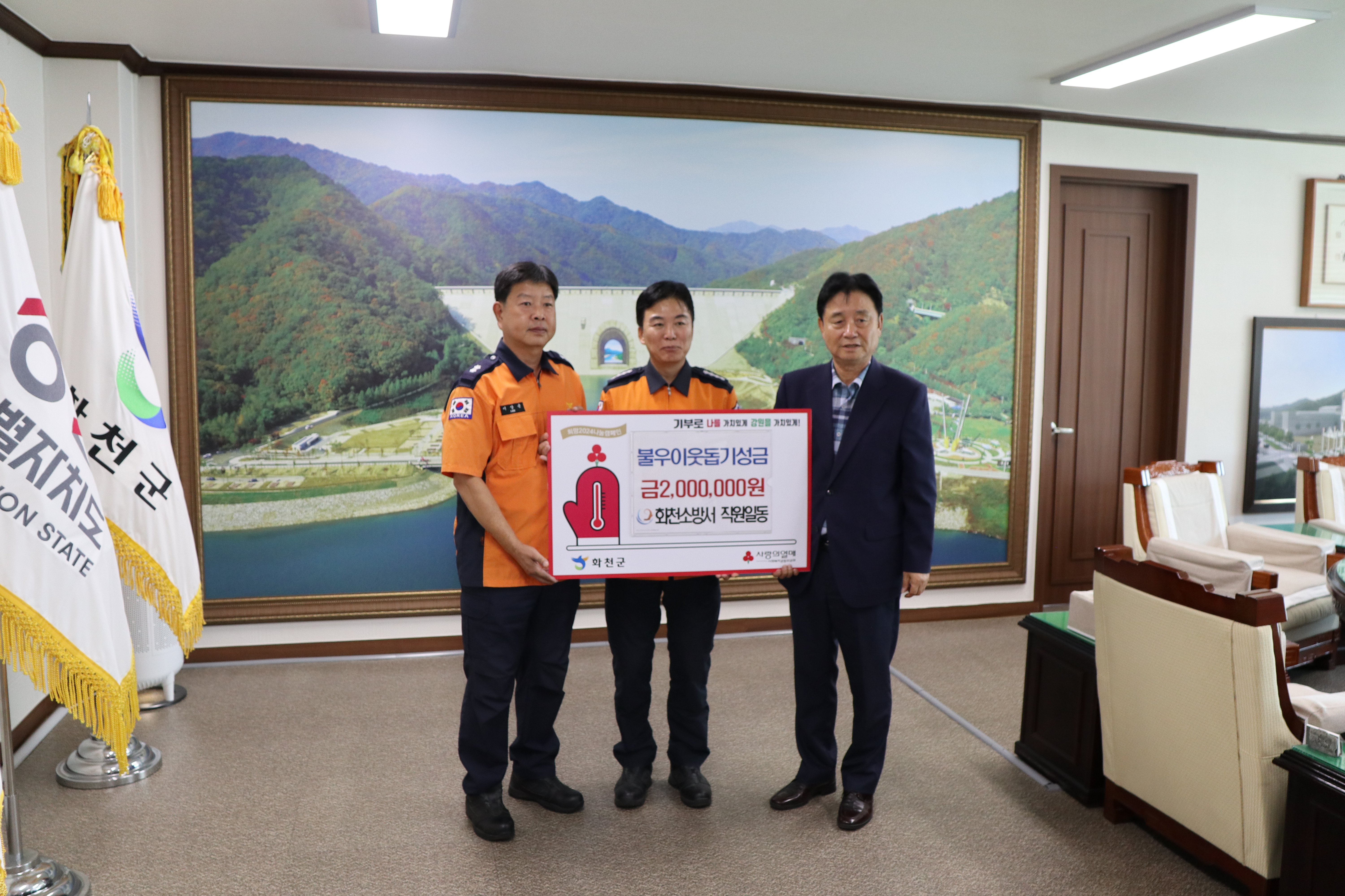 화천소방서는 상조회비(119사랑나눔회)를 통해 마련된 성금 이백만원을 화천군 취약계층 생활 전반의 보탬을 주고자 군청에 전달했다.