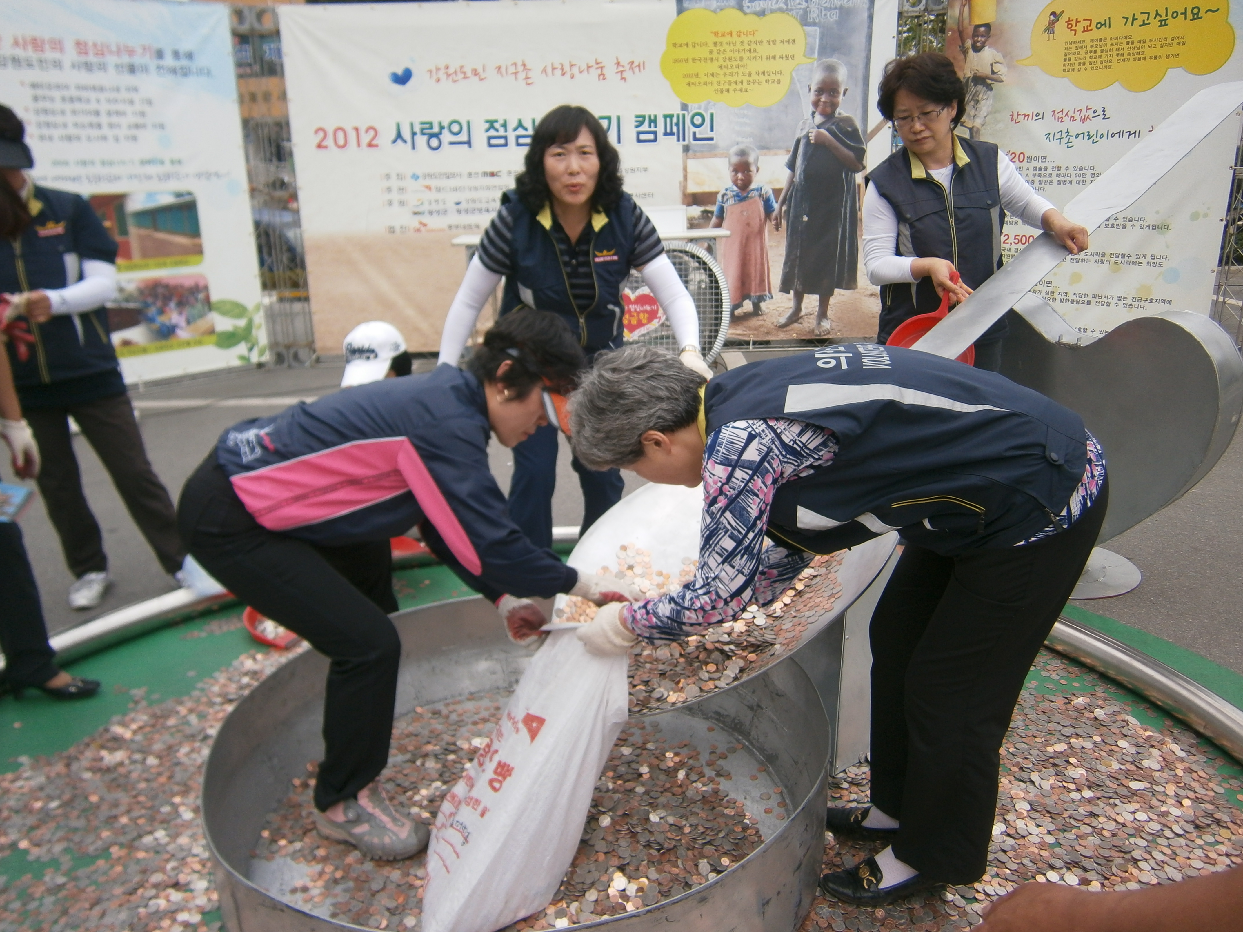 청일 여성소방대 대장(이명순)외 대원들은 5월 24일 횡성 군청에서 열린 강원도민 지구촌 사랑나눔 축제 (사랑의 점심나누기 캠페인)에 참여하여 풍선도 불고 사랑의빵 저금통을 배부 했습니다. 또한 다 채워진 사랑의빵 저금통을 회수하여 저금통 안에 들어있는 동전을 세어 세계의 어려운 아이들이 따듯하고 맛있는 점심을 먹을 수 있도록 봉사하였습니다.