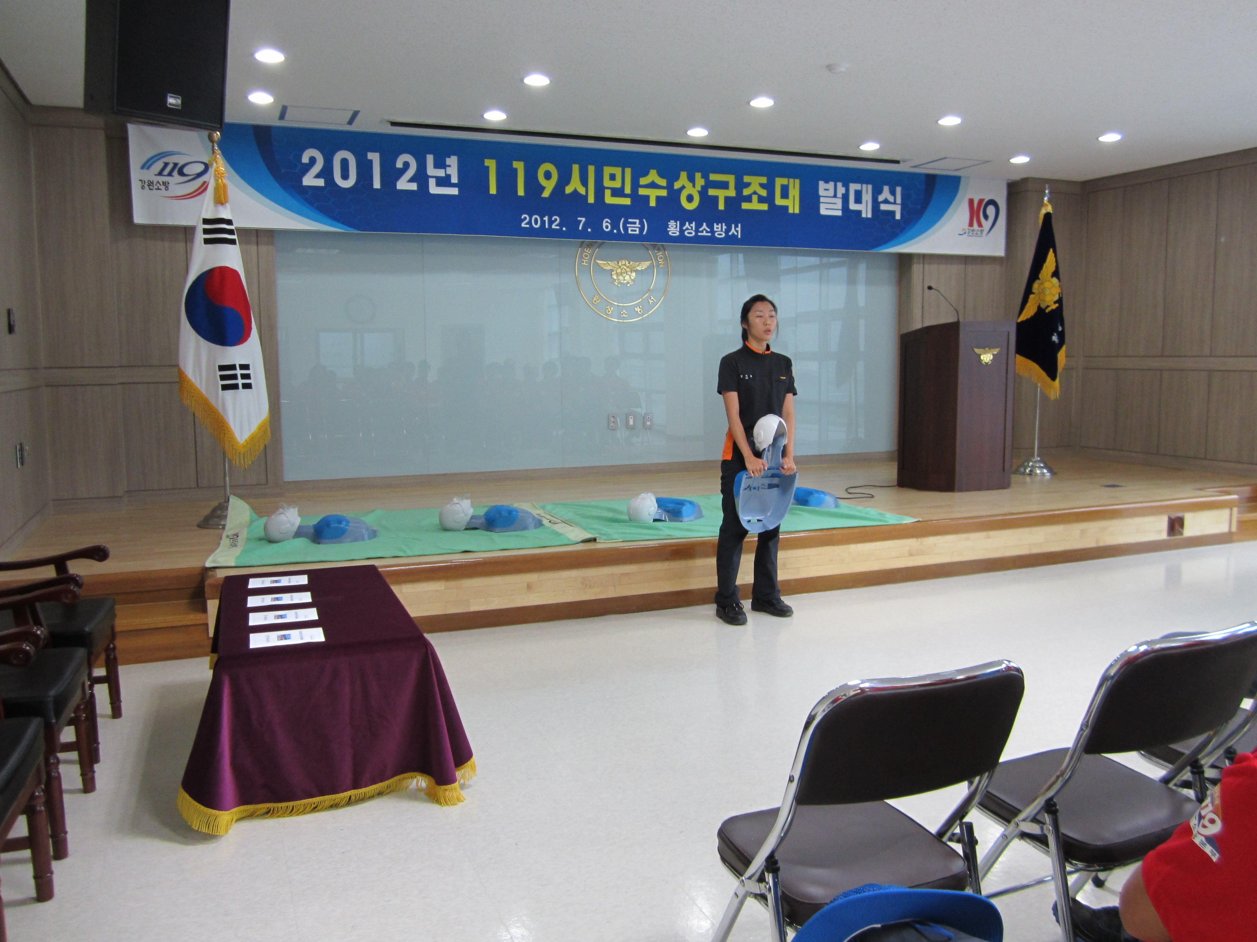2012년 7월 6일 오전 10시 횡성소방서 3층 대회의실에서 발대식 및 교육이 있었습니다.