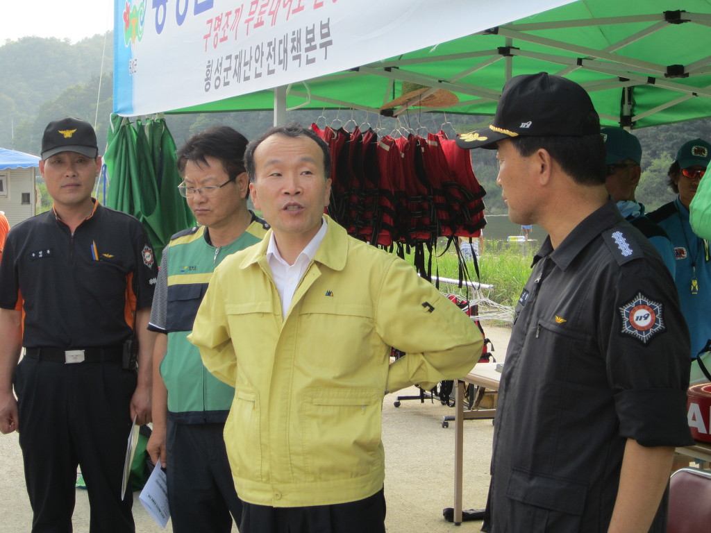 2012년 8월 9일 오후 5시 강원도행정부지사님께서 물놀이 안전사고 5년년속 제로화 일환으로 섬강둔치에 설치된 횡성소방서 이동 상황실을 순시하셨습니다. 횡성의소대에서도 대장님이하 간부님들께서 참석하셨습니다.