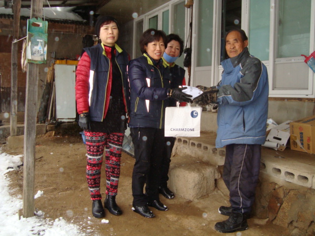 독거노인분들에게 만두와 가래떡을 드렸습니다.