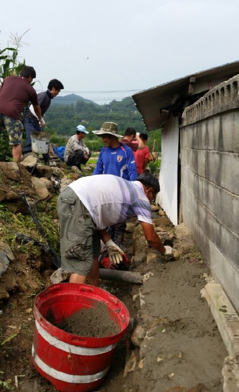 2014년 7월 16일 우항1리 김모 어르신 댁에서 수로정비 활동을 하였습니다.