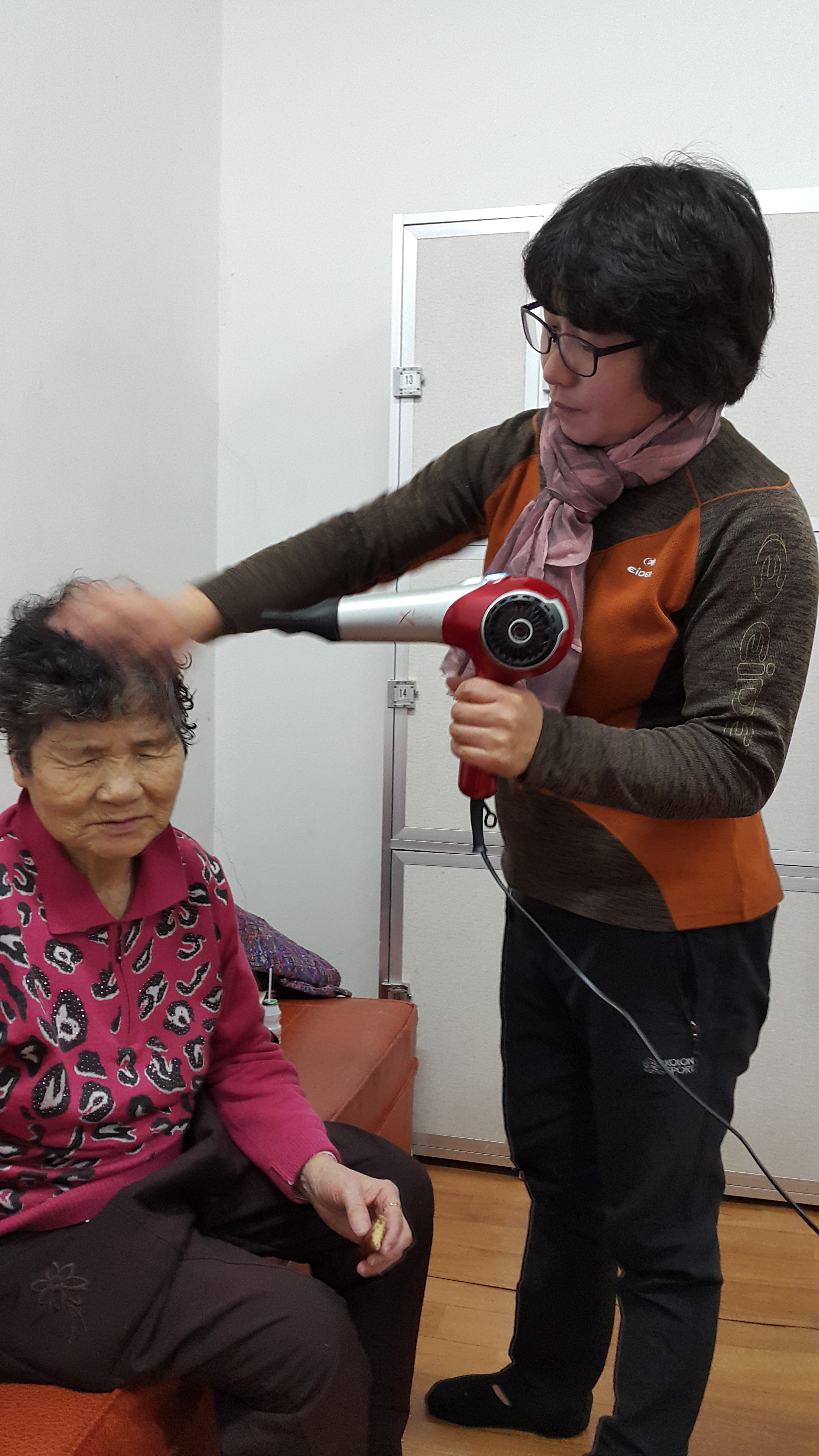어르신들을 모시고 개운하게 목욕봉사하는 서원 여성대원들