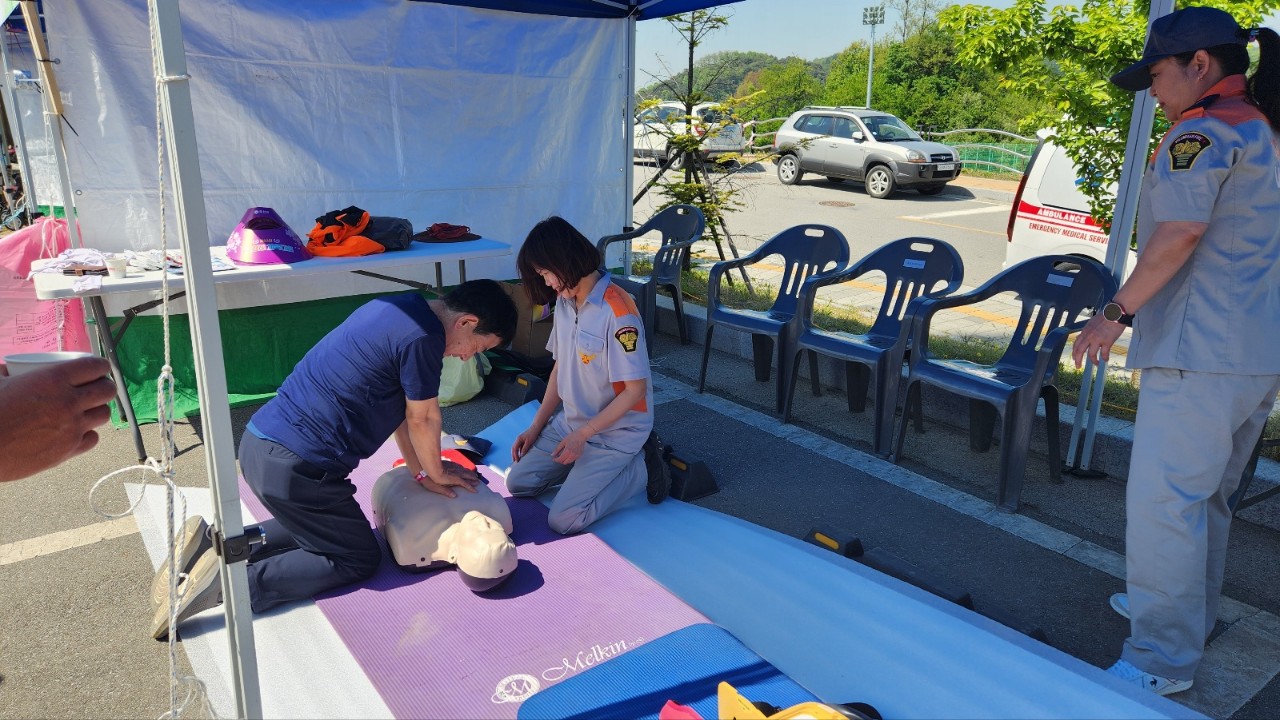 체험 할 수 있는 심폐소생술 및 자동심장충격기 부스를 운영하였습니다.