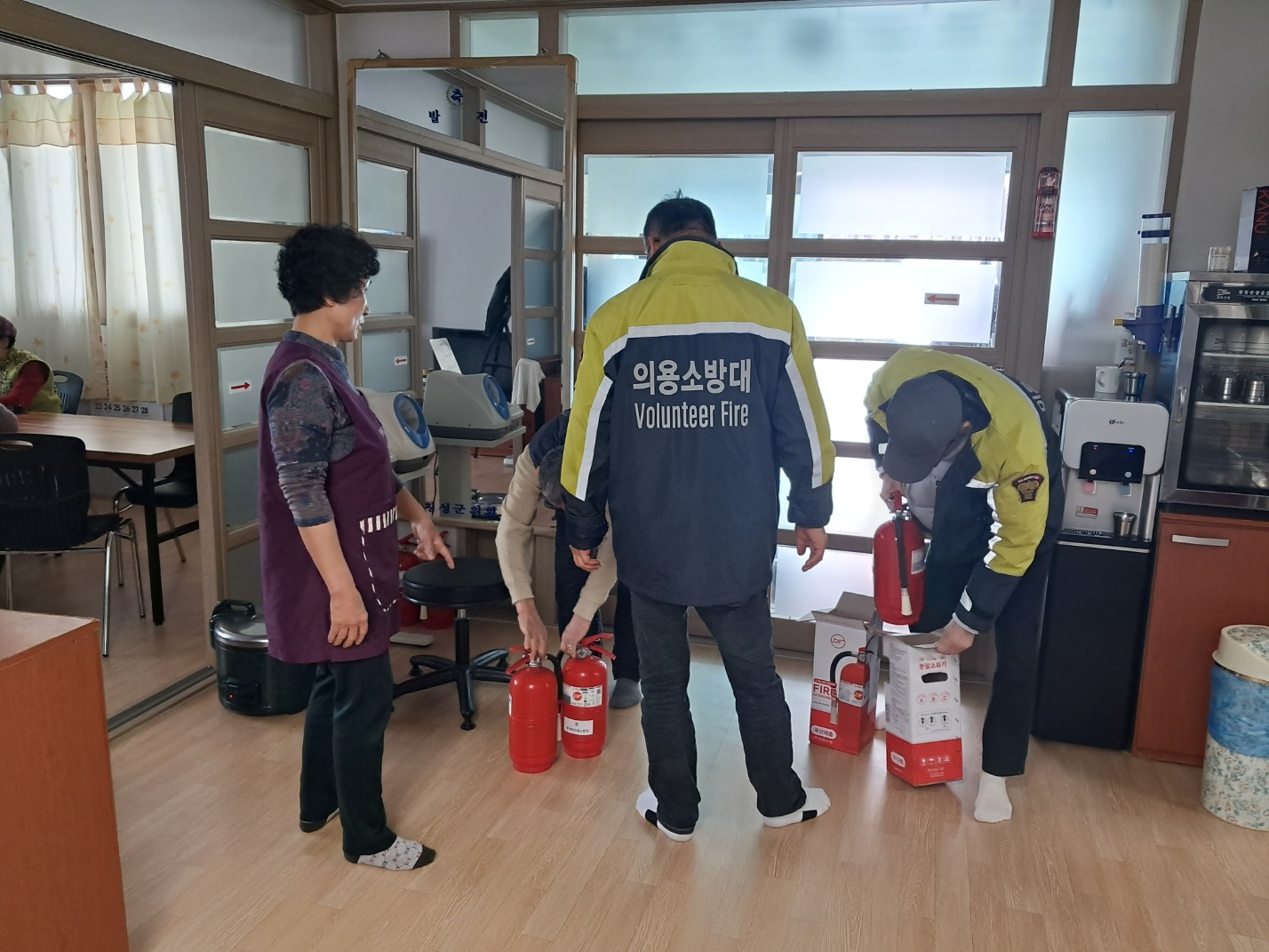 이번 활동은 경로당과 노인정을 방문하여 화재 감지기 점검 및 소화기를 배부하였습니다.