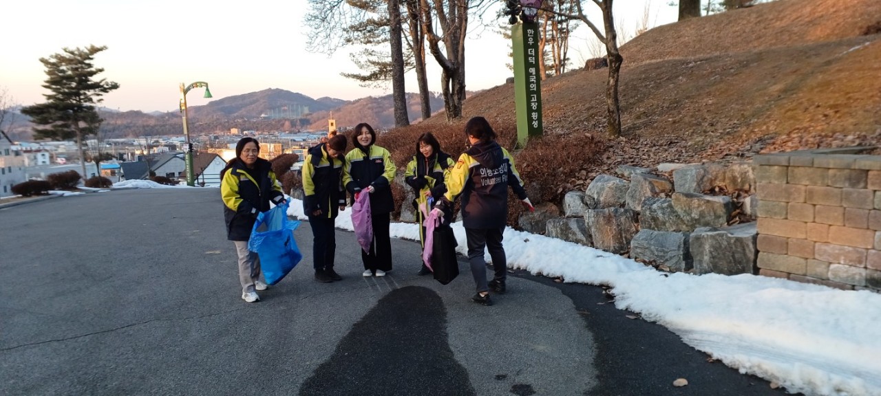 우천여성의용소방대가 2월 21일 오전 10시부터 12시까지 새말탑 일대에서 환경정화활동을 진행했습니다.