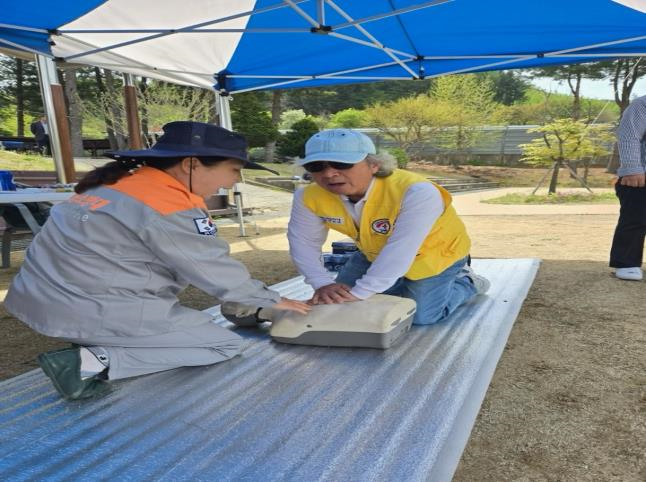 안흥남녀의용소방대, 안흥면민 체육대회서 CPR 체험 부스 운영… 안전의식 높여