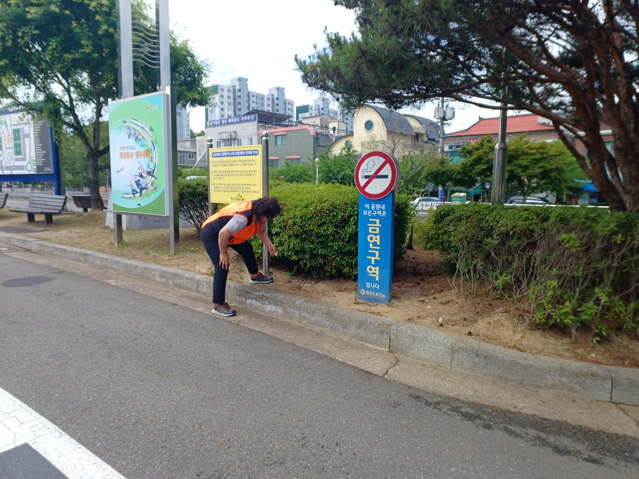 대회에 참여한 대원들은 걷기 행사 후 곧바로 주변 정리에 나서 화단과 가로수 주변에 버려진 담배꽁초, 캔, 비닐 등의 쓰레기를 수거하는 데 힘썼습니다.