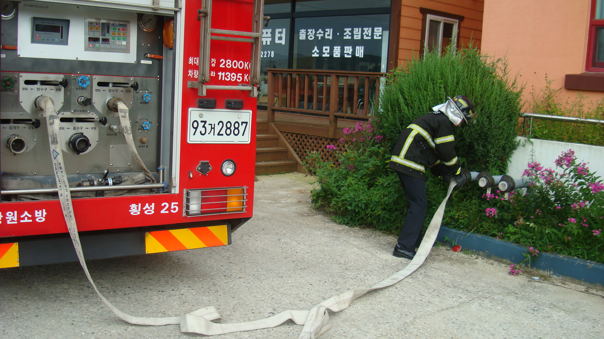 금일 소방훈련은 불특정 다수인들이 이용하는 숙발시설로 화재시 다수인명피해 우려가 예상되어 내부구조 및 비상구 확인, 관계자 인명대피 훈련, 연결송수관점령, 소방안전교육을 병행하여소방훈련을 실시하였습니다.