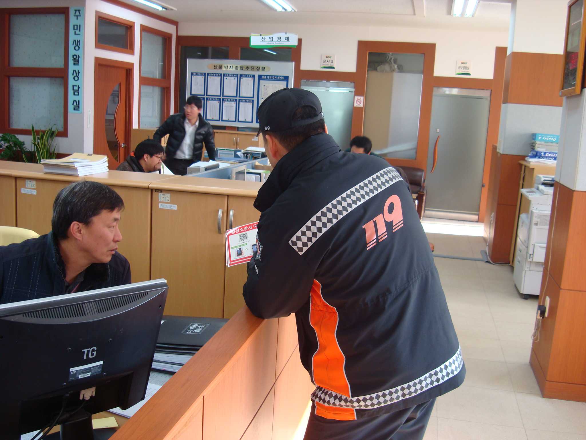 겨울철 소방안전대책 특수시책의 일환인 QR코드 소방홍보 마케팅 추진으로 둔내119안전센터에서는 우선 관공서및 은행등을 방문하여 QR코드 소방홍보 및 홍보스티커 부착하였습니다.