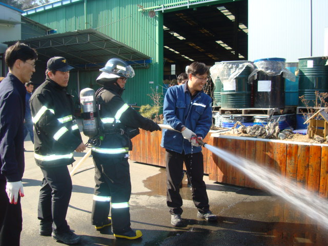 이번 훈련은 공장 내부, 외부 구조 파악은 물론 화재시 일어날수 있는 모든 상황에 대해 철저히 대응 가능하도록 훈련하였으며, 특히 동력소방펌프 사용 교육및 방수 훈련을 실시하여 화재시 신속한 진압이 이루어 질수 있도록 하였습니다. 더불어 소방시설 검사, 관계자에 대한 소방안전 교육, 출동/귀소 중 소방통로 확보도 함께 실시 하였습니다.