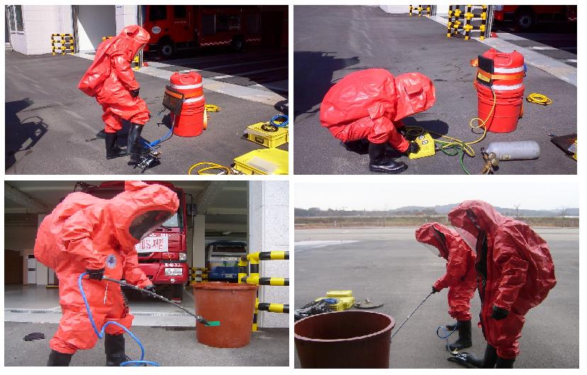 이날 구조대는『2011년 3월 중 구조대원 특별 교육훈련 계획』에 따라 화학사고 대응정보 및 대응절차를 연마하고 사고수습 능력을 배양하기 위해 실전과 같은 훈련을 실시하였습니다.