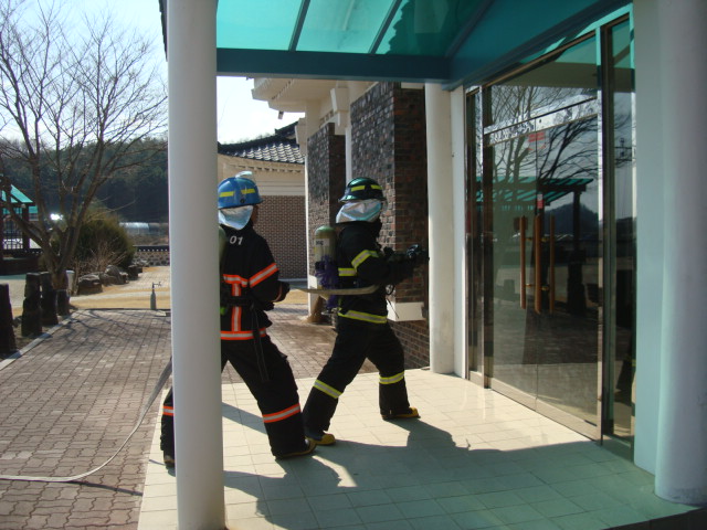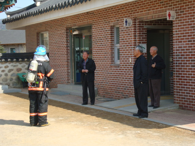 2011.4.9(토)~4.10(일) 2일간 우천면 정금리 정금민속관에서 개최되는 제25회 회다지 축제는 축제 기간 10,000정도의 인파가 몰릴것으로 예상되는 우리지역의 큰 행사이므로 우천센터에서는 사전 현장적응훈련을 통하여 축제장 주변의 소방차량 진입로 확인, 수관연장 훈련, 민속관 건물 구조파악,축제당일 축제장 주변이 혼잡할것으로 예상되어 관계자와의 소방차량 대기장소등의 협의 등 축제당일의 안전을 위하여 철저한 훈련을 실시하였습니다.