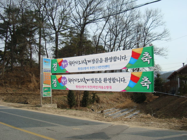 횡성소방서(서장:조근희) 우천119안전센터에서는 2011.04.06.(수) "제25회 회다지소리 축제장" 맡이하여 프랜카드를 게첨하였습니다.
