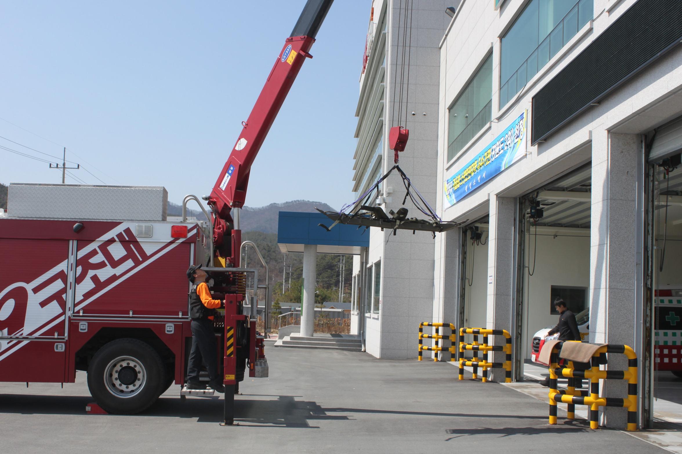 횡성소방서(서장 조근희)119구조대 에서는 산악용들것 및 구조공작차 크레인을 이용 최근 늘어나고 있는 봄철 행락객들의 산행 및 각종 안전사고에 대비해 인명구조훈련을 실시하였다. 이번 훈련을 통하여 크레인 조작 숙달훈련과 산악용 들것이용 헬기구조등 각종 재난현장에 투입 되었을시 가장 신속하고 정확하며 안전한 구조활동을 수행할수있는 기술을 연마하였다.
