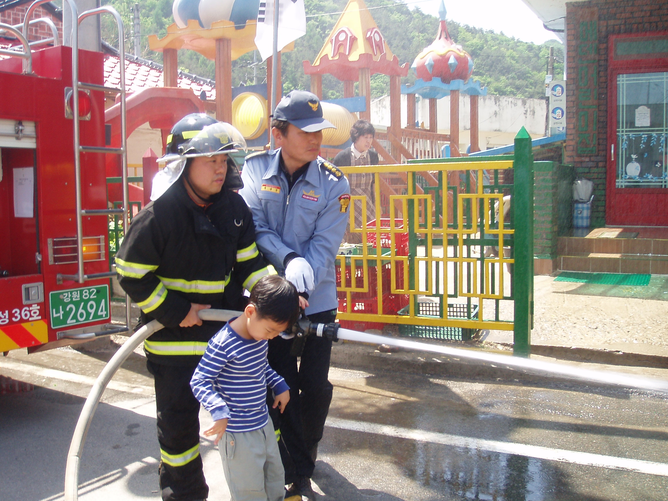 어린이들을 대상으로한 소방안전교육에 중점을 두어, 화재발생 시 대피요령 및 119신고방법, 방수 체험 등을 실시하였습니다.