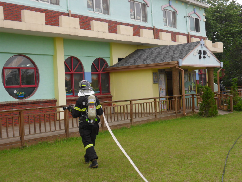 방문하여 아동복지시설 현지적응 소방훈련을 실시하였습니다. 소방호수 2본을 연장하여 가상화점에 신속히 진입하는 현장훈련을 실시하였습니다. 어린이집 관계자 및 원생들을 대상으로 유사시 초기진화 및 대피훈련요령, 소화기 사용방법에 대하여 교육하였습니다.아울러 주기적인 소방시설점검도 당부드렸습니다.