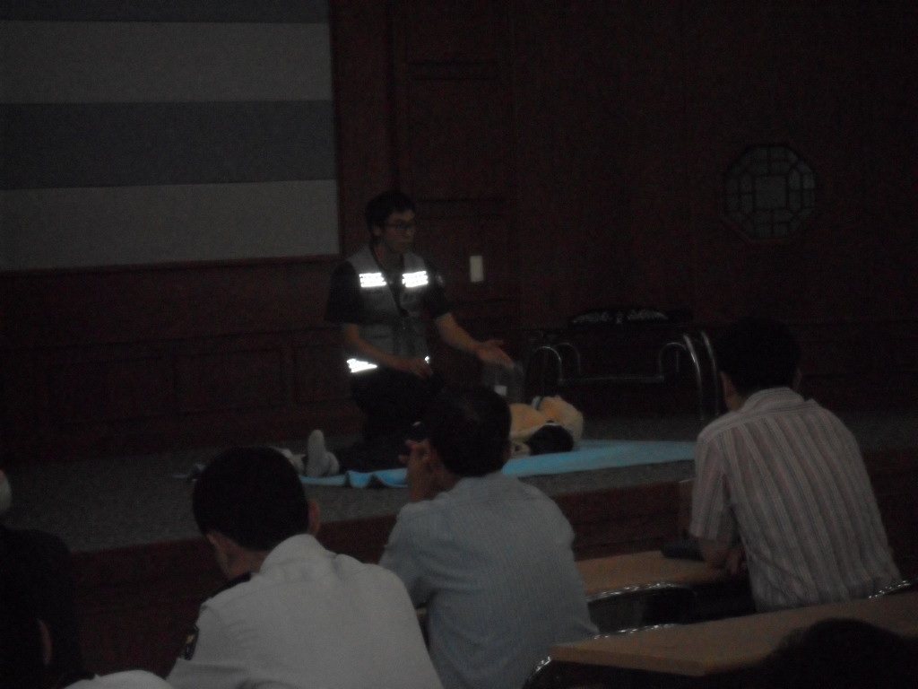 횡성소방서(서장 조근희) 횡성119안전센터에서는 2011년 06월 27일(월) 횡성경찰서를 방문하여 경찰관 및 전,의경 50여명을 대상으로 2011년 2월 대한심폐소생협회에서 발표한 심폐소생술 가이드라인과 2008년 6월부터 공공장소에 설치를 의무화하고 있는 자동제세동기(AED,Automated External Defibillator)의 사용법을 중심으로 교육하였습니다.
