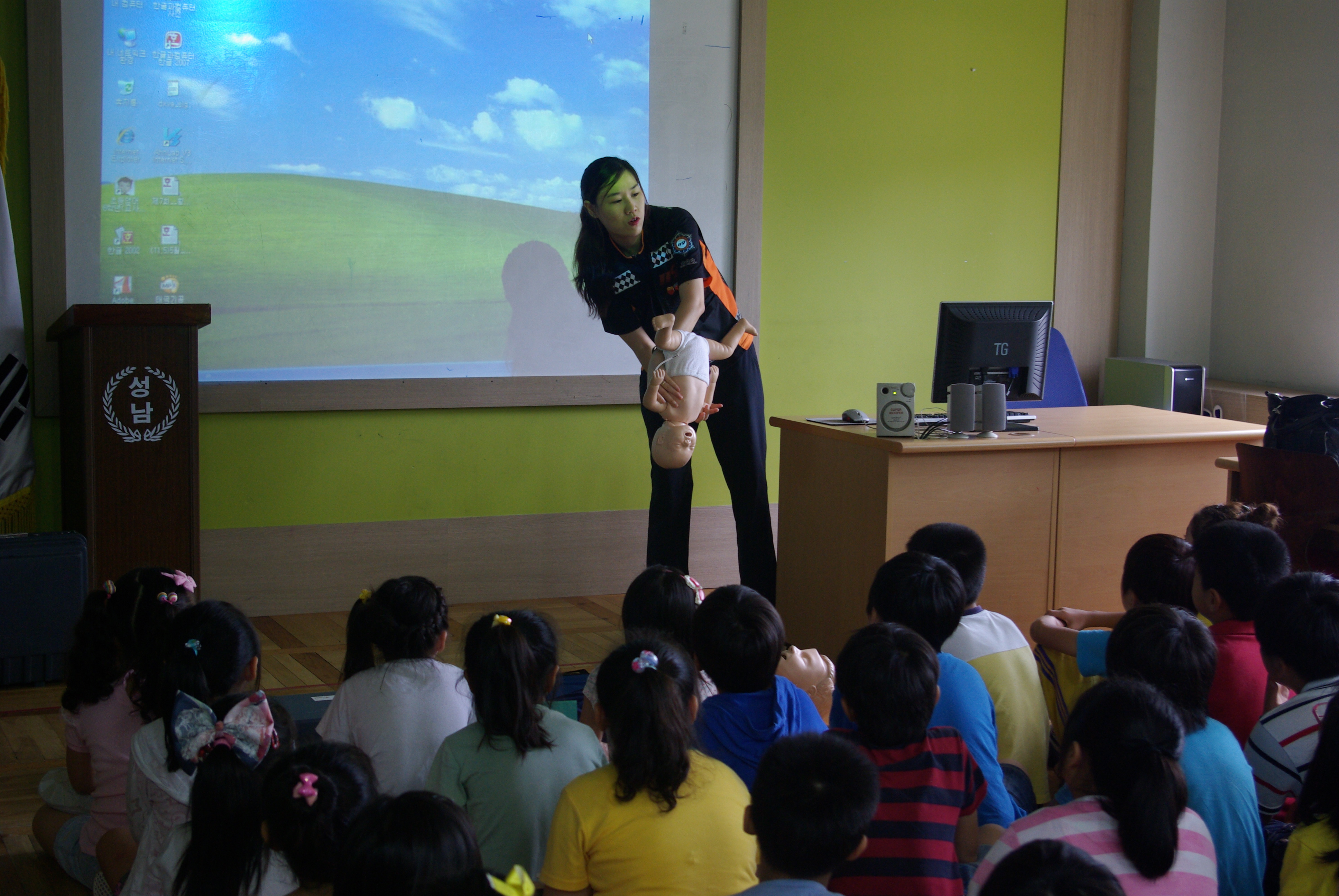 이날은 학생들은 교육용 인형에 대한 많은 호기심을 보였으며 실습도 통하여 안전한 방학생활