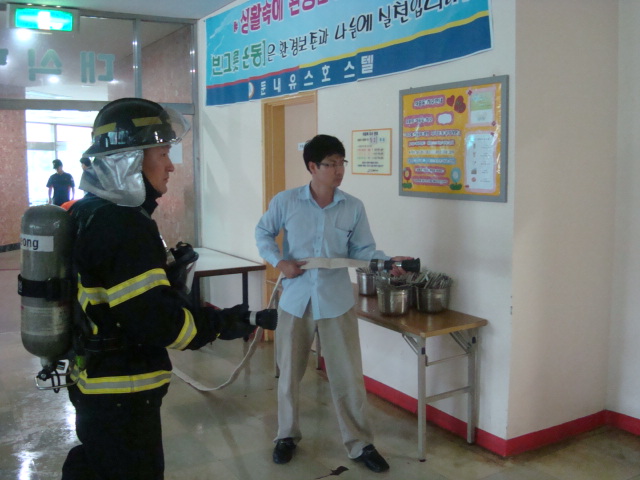 횡성소방서(서장 조근희) 둔내119안전센터에서는 2011년 7월 25일(월) 14:00 둔내면 삽교리에 위치한 둔내유스호스텔 현장출동 적응훈련을 실시하였습니다. 불시출동 숙지 및 소방시설을 확인하고 관계자 소방안전교육을 병행 실시하였습니다. 유사시 각종 재난현장에서 신속하고 안전한 소방활동을 위해 평소 꾸준한 훈련으로 국민의 생명과 재산을 보호하는데 최선을 다하겠습니다.