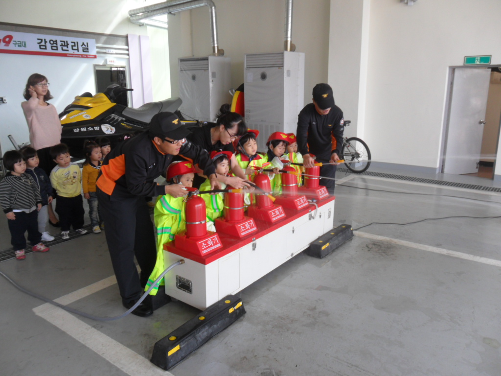 횡성소방서(서장 조근희) 횡성119안전센터에서는 2011. 09. 20(화) 10:30 횡성읍 북천리에 위치한 횡성어린이집 원생 30여명을 초대하여 119전화신고요령, 화재시 대피방법, 물소화기 방수 및 구조,구급, 진압장비 체험 등 소방안전교육을 실시하였습니다.
