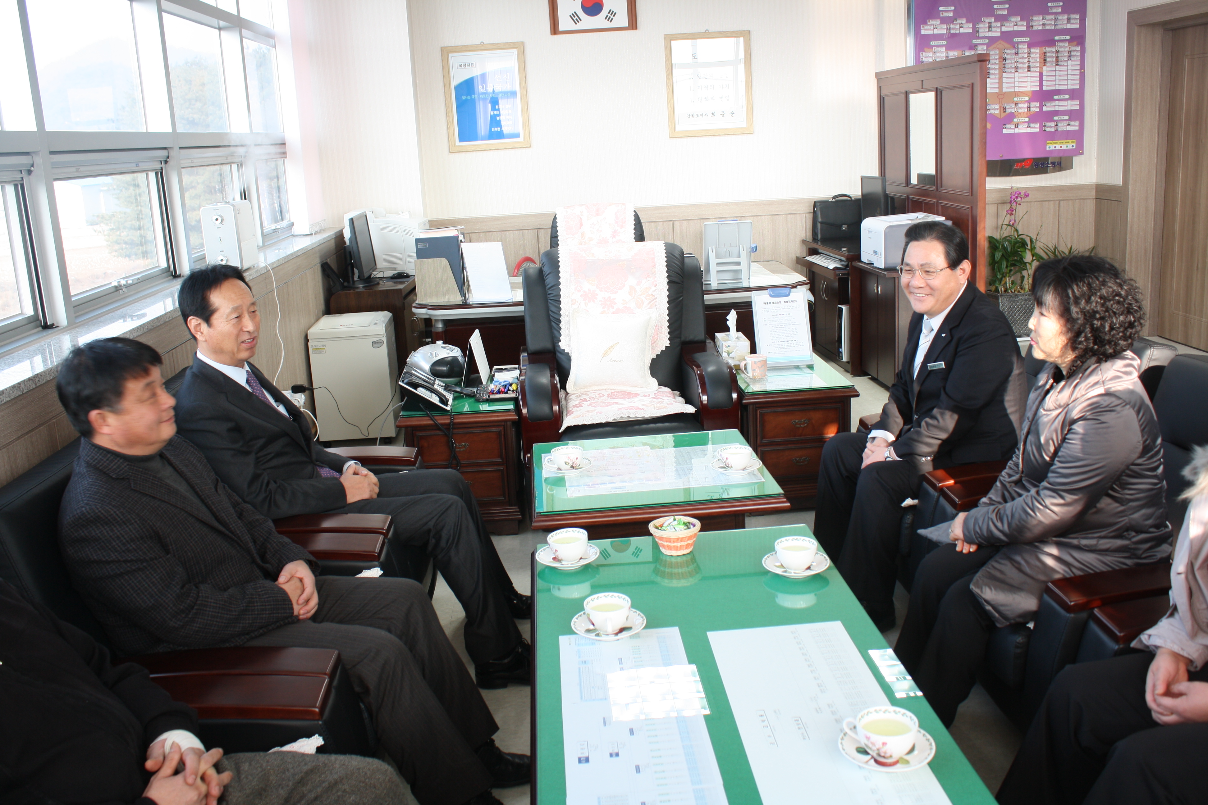 횡성소방서(서장 조근희)는 10일 오후 2시 30분 2012 주민과의 대화 행사의 일환으로 군수님이 횡성소방서를 방문했다. 조근희 서장 및 이주혁 횡성의용소방대장, 박선숙 횡성여성의용소방대장이 참석한 가운데 현안당면과제 및 환담을 나누었으며, 직원 및 의용소방대원에 대하여 격려했다.