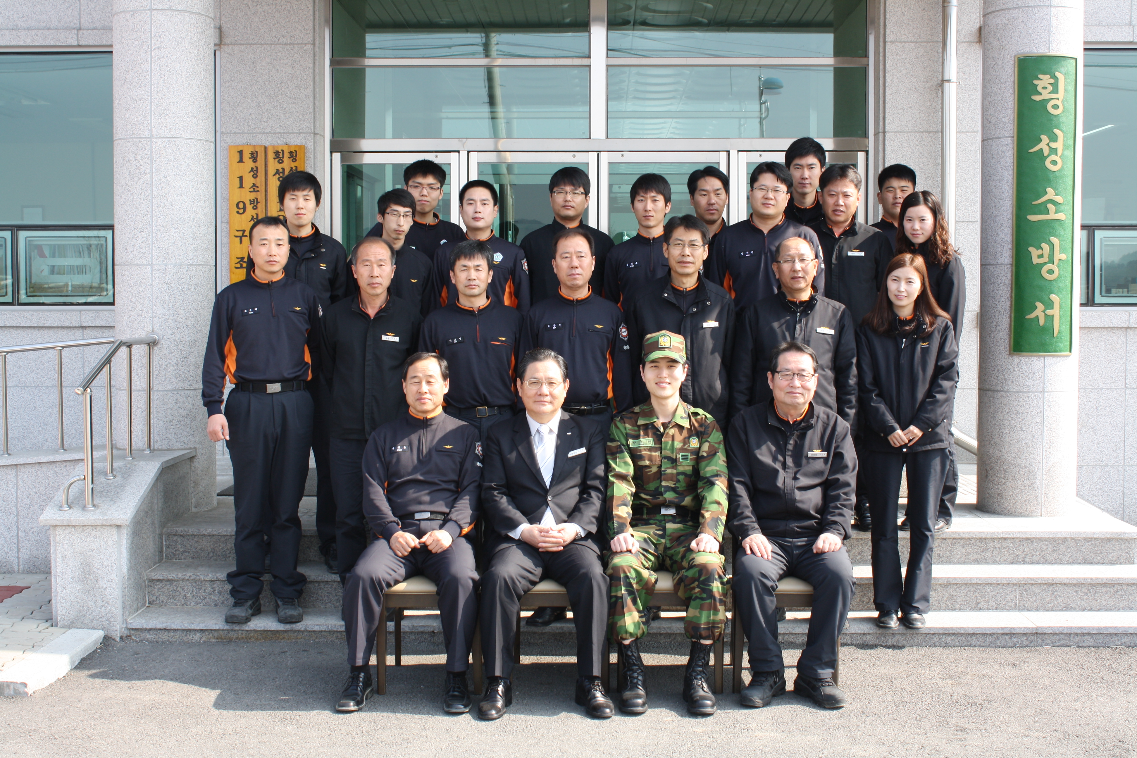 횡성소방서(서장 조근희)는 2010년 5월 6일에 입대하여 2년여간 횡성소방서를 위해 열심히 일하며 2012년 4월 17일자로 전역하게 된 수방 곽동민에 대한 전역신고식 및 전역기념패 전달식을 실시하였습니다.