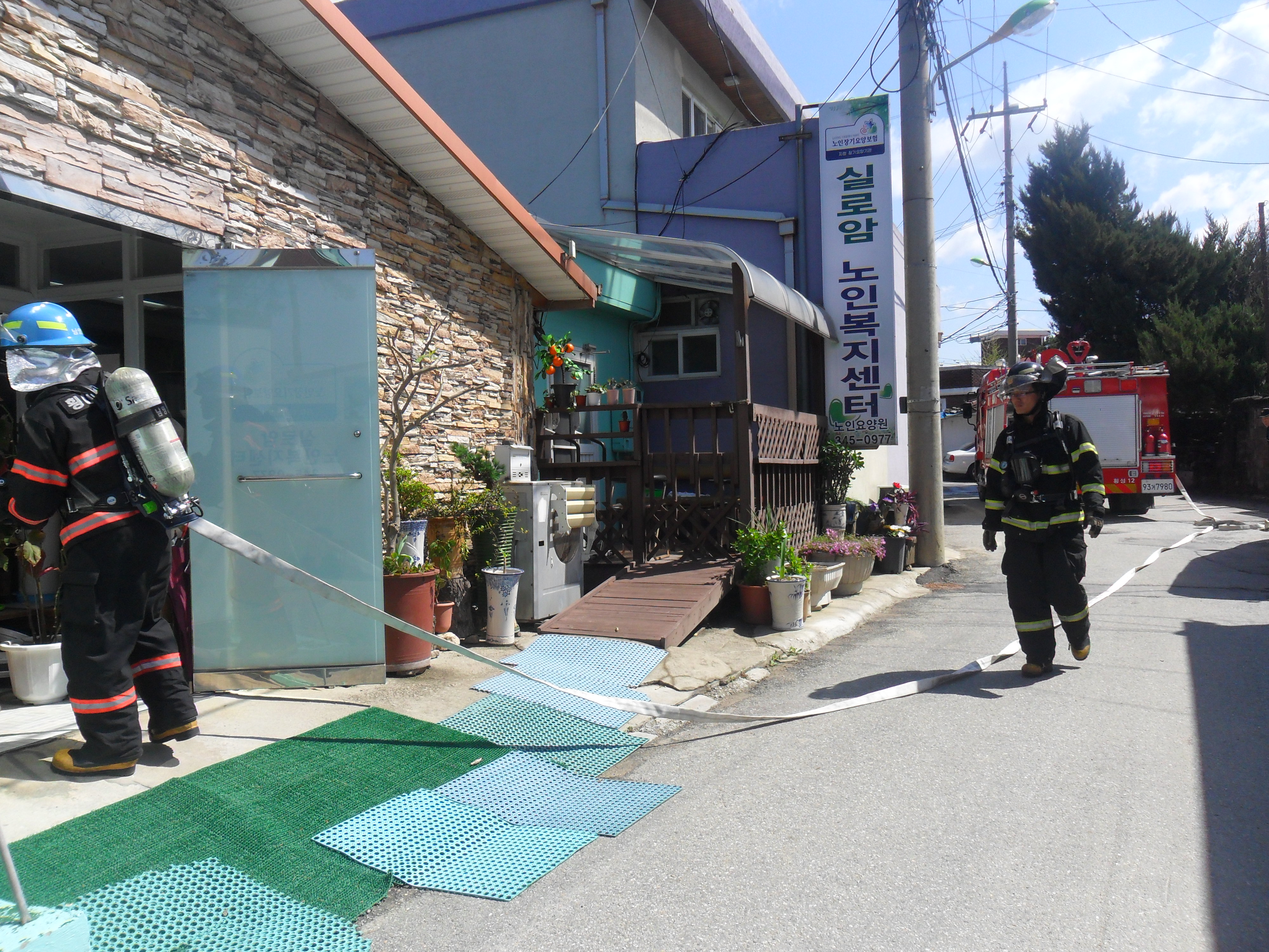 횡성소방서 (서장 조근희) 횡성119안전센터에서는 2012.4.26(목) 읍하리에 위치하고 있는 실로암복지센터를 대상으로 사회복지시설 소방훈련을 실시 하였습니다. 복지센터 주변 소방용수시설 및 내부 구조등을 확인하였고 관계자 소방안전교육을 실시하여 화재가 일어나지 않도록 사전예방에 중점을 두었습니다.