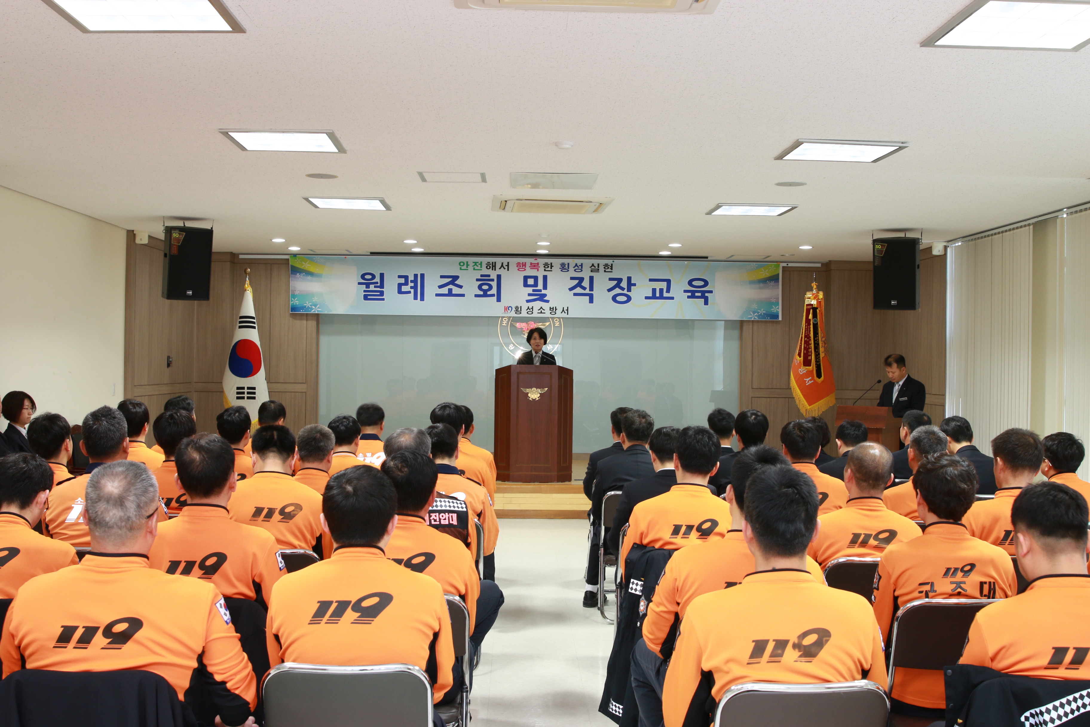 횡성소방서(서장 원미숙)는 4일 횡성소방서에서 월례조회를 실시했다. 월례 조회 후에는 교통안전공단 전미연 강사를 초빙해 교통안전사고 예방교육을 실시했다.