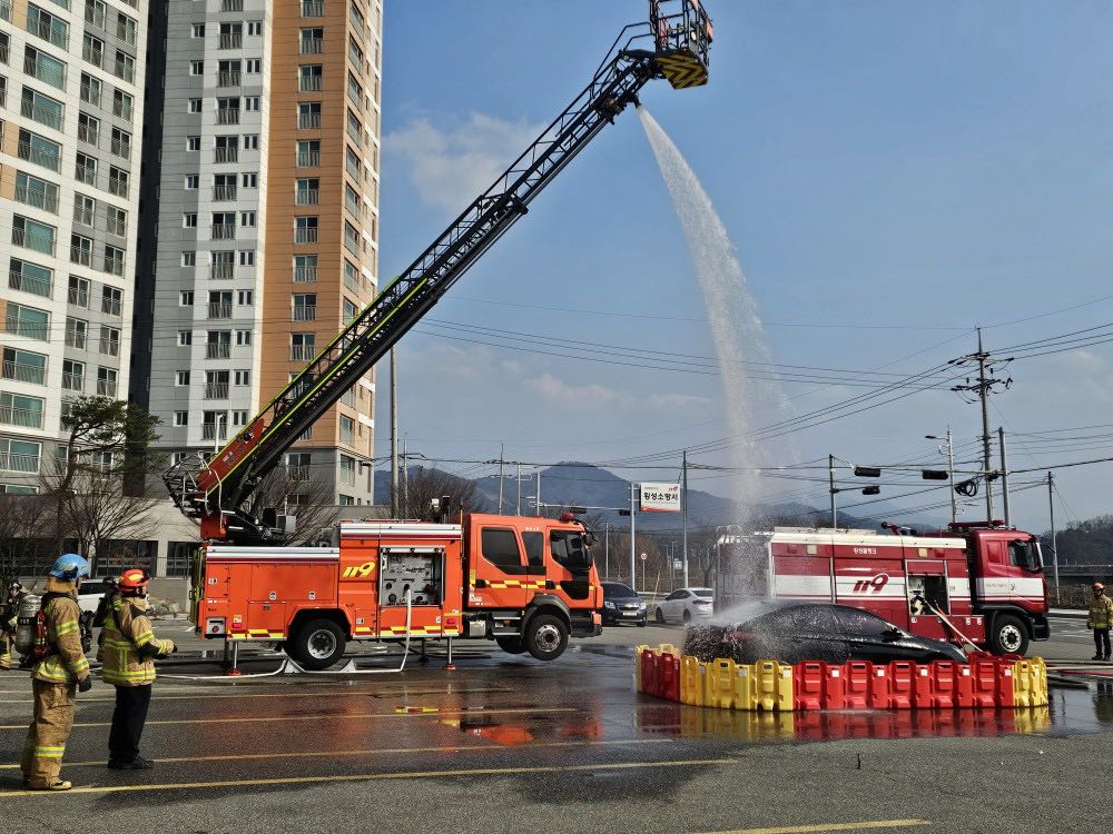 [횡성소방서, 전기차 화재 대응 시연회 개최]