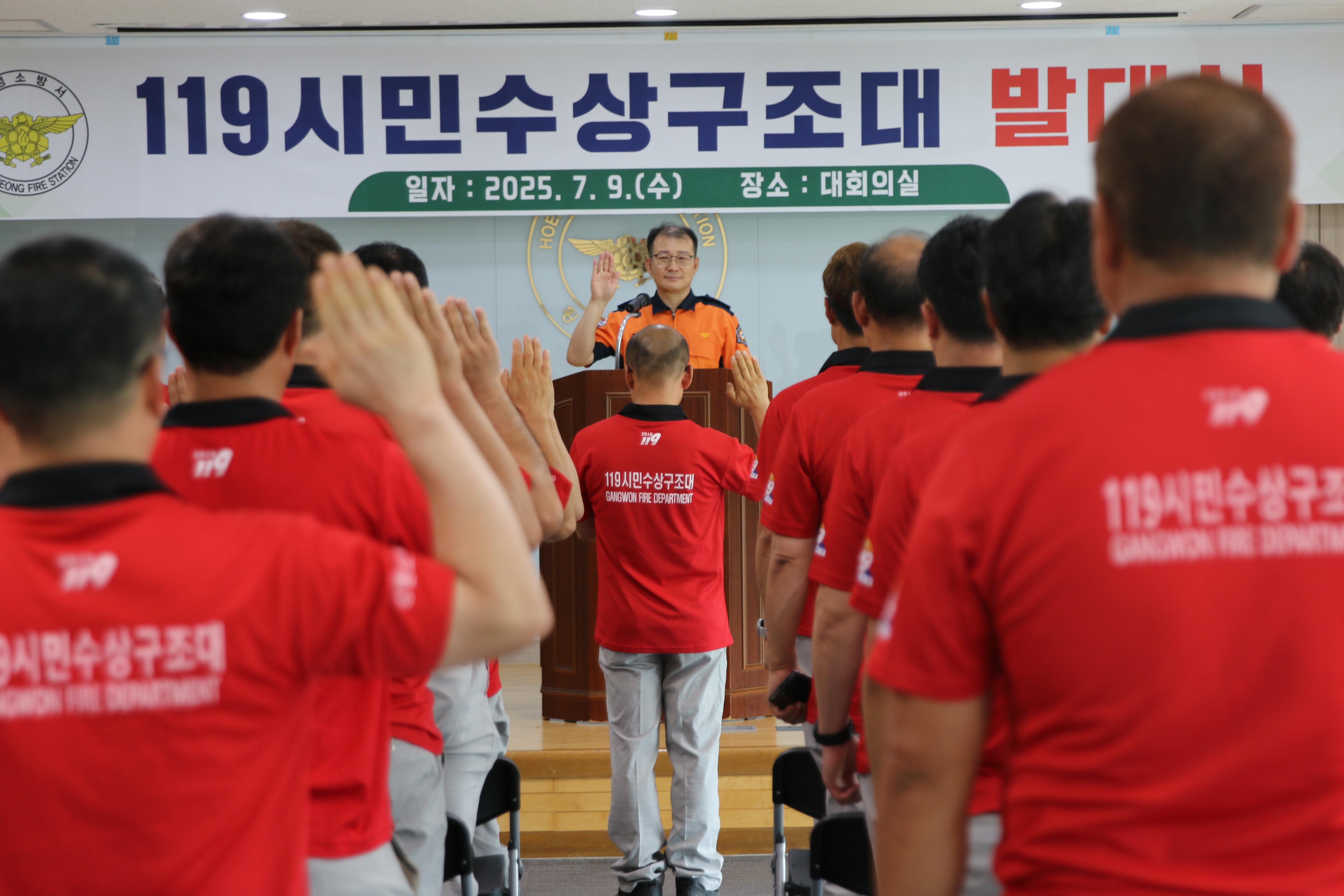 횡성소방서(서장 이광순)는 9일 본서 3층 대회의실에서 2025년 여름철 수상인명구조 활동을 위한 119시민수상구조대 발대식을 개최했다.